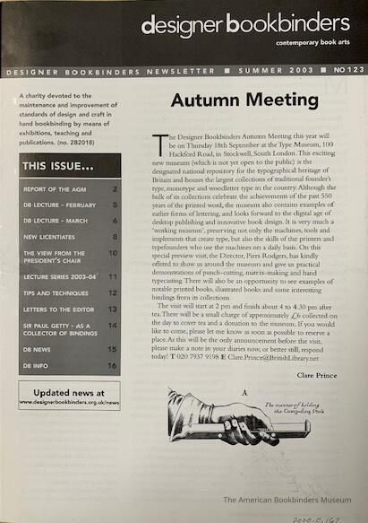 Designer Bookbinders newsletter; No.123; Summer 2003Entry/Object ID