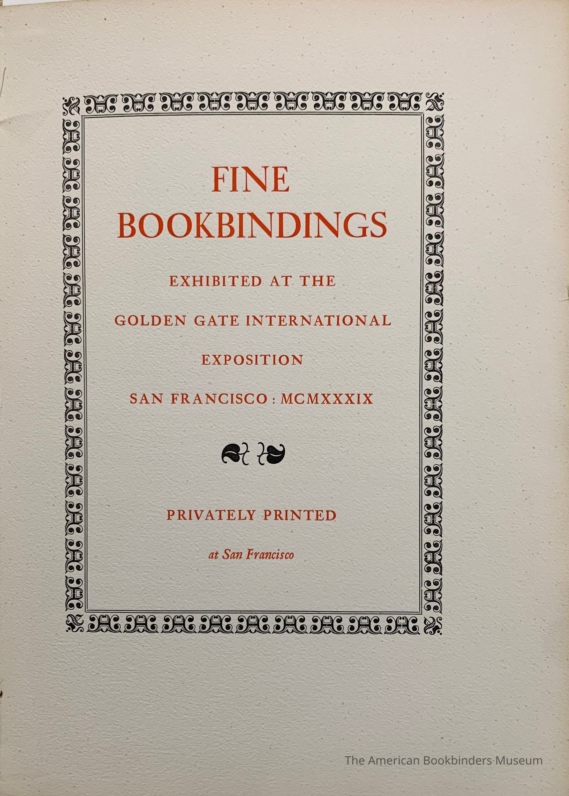 Fine bookbindings exhibited at the Golden Gate International Exposition, San Francisco MCMXXXIX.Entry/Object ID