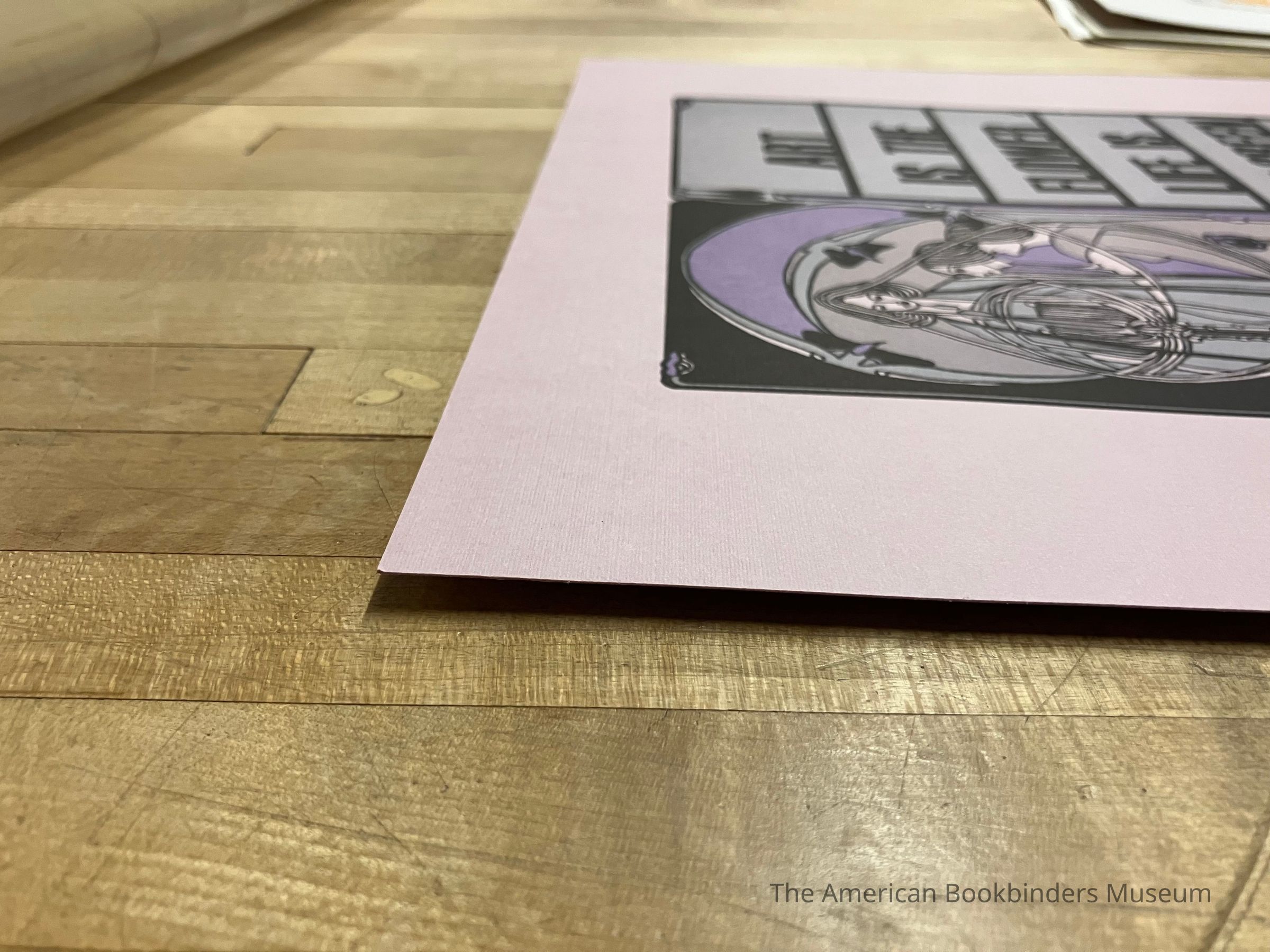 Lavender paper. Left shows three women with a circle around their heads, with a few flowers following the shape of their dresses. Left has text and author in purple at the bottom.Collection