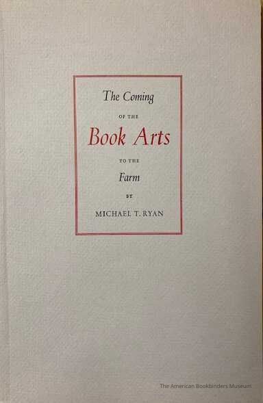 The coming of the book arts to the farm / by Michael T. Ryan.