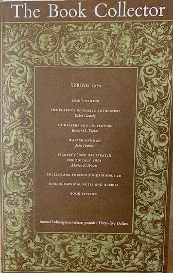 Bain's Bewick / The Politics of Female Authorship, Isobel Grundy / Of Dealers and Collectors, Robert H. Taylor / Walter Bowman, John Feather / Vicker's 'New Illustrated Periodicals' 1861, Marian E. Brown / A Franconian binding c.1475, Mirjam M. Foot.Collection