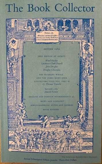 Jake Zeitlin at Eighty, Ward Ritchie, Lawrence Clark Powell, John Dreyfus, Douglas Cleverdon / Two Melville Association Copies: The Hubbard Whale and the Jones Modby-Dick (Part II), G. Thomas Tanselle / 'Munby Ltd.', Harold Forster / A binding by James Scott c.1779, Mirjam M. Foot.Collection