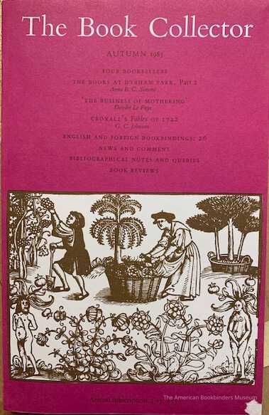Four Booksellers [Francis Norman, James Gordon Akers Campbell, Michael O'Neill Walshe, George Valentine Mervyn Heap / The Books at Dyrham Part, Part 2, Anna E.C. Simoni / 'The Business of Mothering', Deirdre Le Faye / Croxall's Fables of 1722, G.C. Johnson / A Binding by the Du Saix Master c.1538, Mirjam M. Foot.Collection
