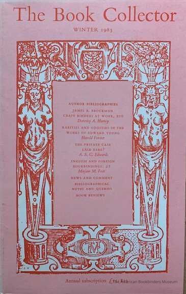 Author Bibliographies / James R. Brockman Craft Binders at Work XIII, Dorothy A. Harrop / Rarities and Oddities in the Works of Edward Young, Harold Forster / The Private Case Laid Bare?, A.S.G. Edwards / A Binding Made at Klus 1526, Mirjam M. Foot.Collection