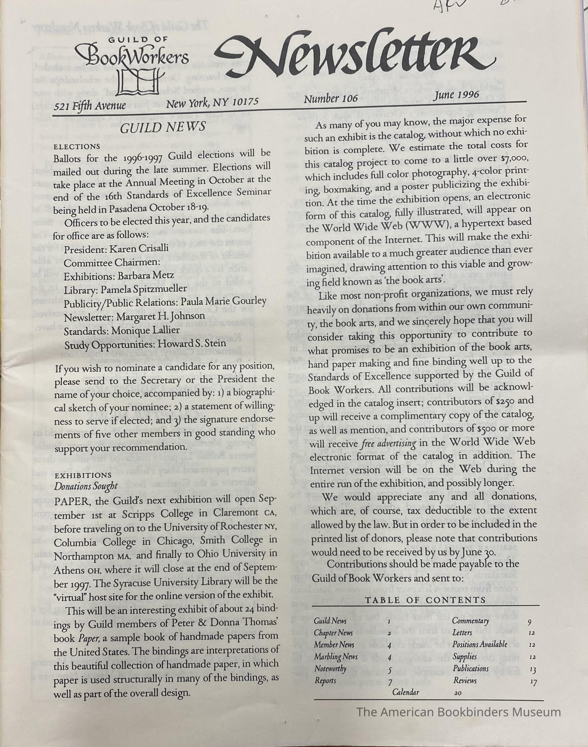 Guild of Book Workers Newsletter ; Number 106 , June 1996Entry/Object ID