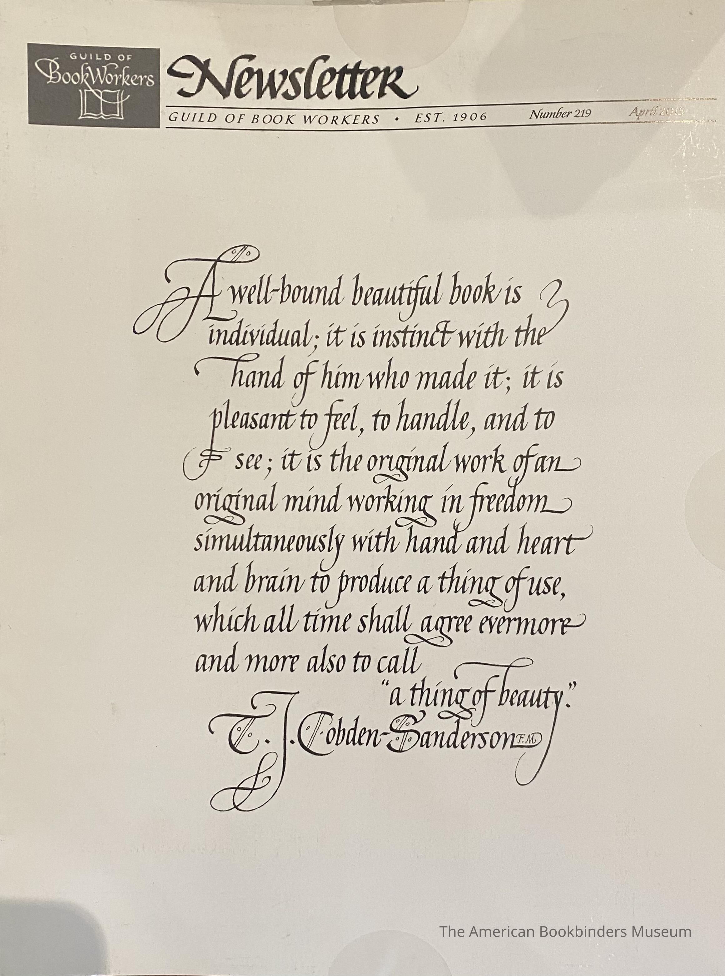Guild of Book Workers Newsletter ; Number 219 , April 2015Entry/Object ID