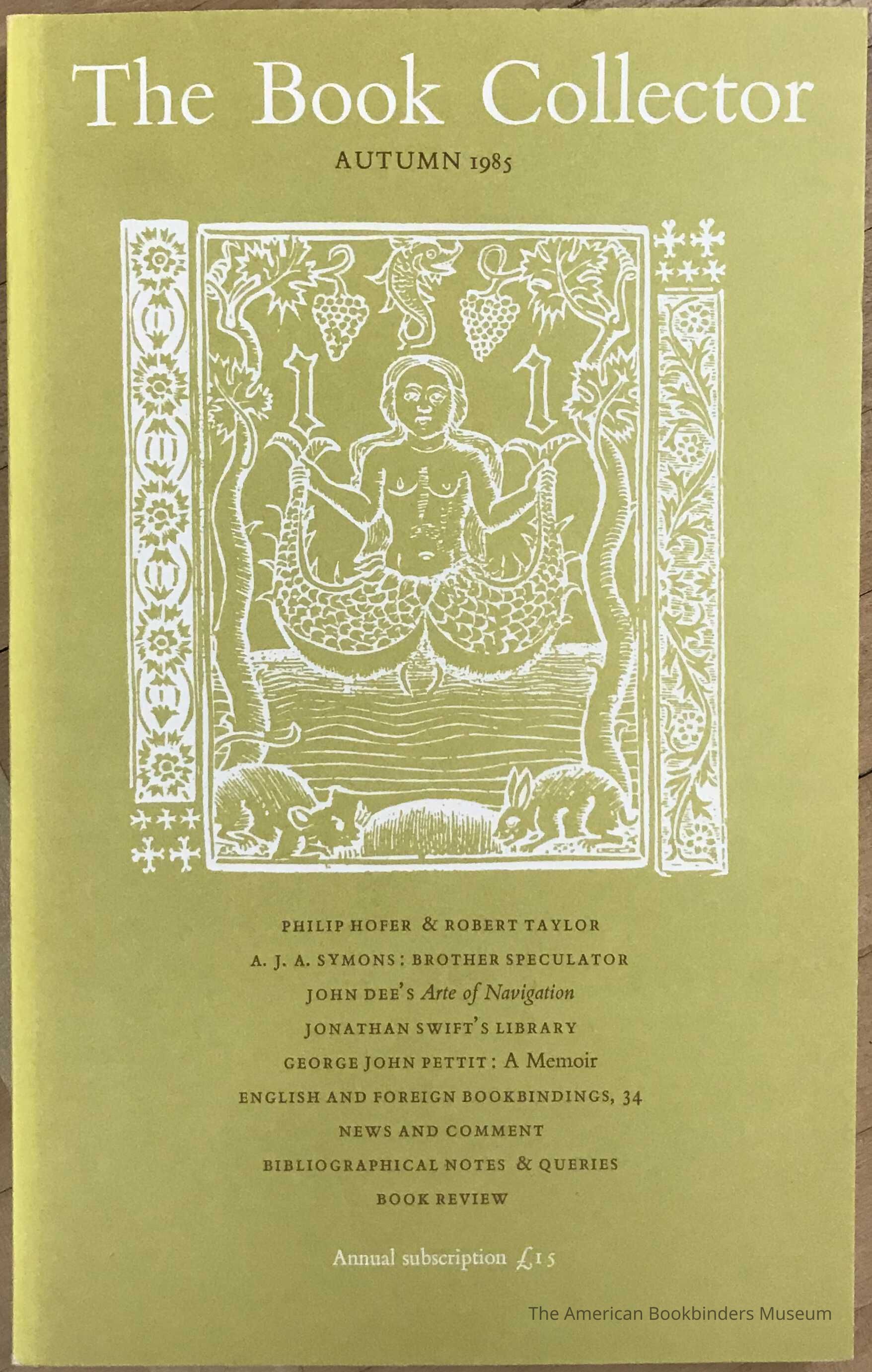 Philip Hofer & Robert Taylor / A.J.A. Symons, Brother Speculator, Julian Symons / John Dee's 'Arte of Navigation', David Gwyn / Jonathan Swift's Library, E.J.W. McCann / George John Pettit: A Memoir, 'Bibliopole' / English and Foreign Bookbindings 34, Felix B. de Marez OyensCollection