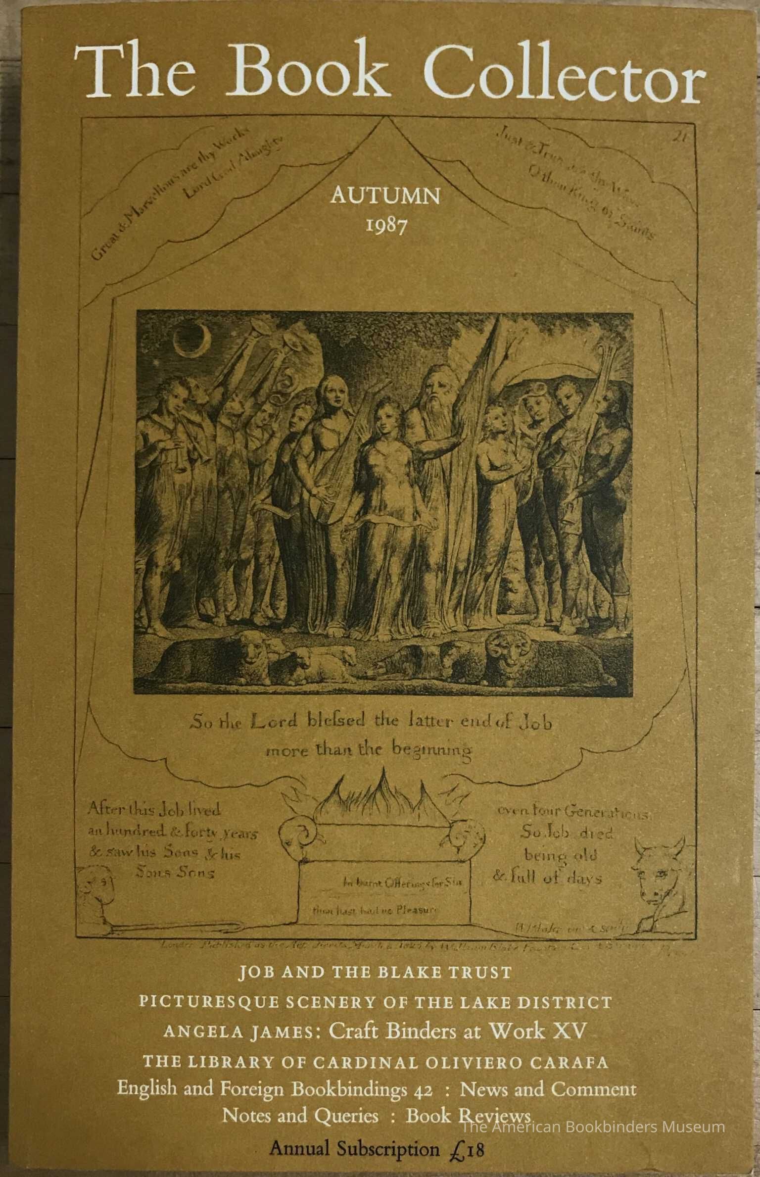 Job and the Blake Trust / The Picturesque Scenery of the Lake District 1752-1855: Part III, Peter Bicknell / Angela James: Craft Binders at Work XV, Dorothy A. Harrop / The Library of Cardinal Oliviero Carafa: Part I, Diana Norman / An Edinburgh thesis binding by Charles Cleland c.1784, John Collins.Collection