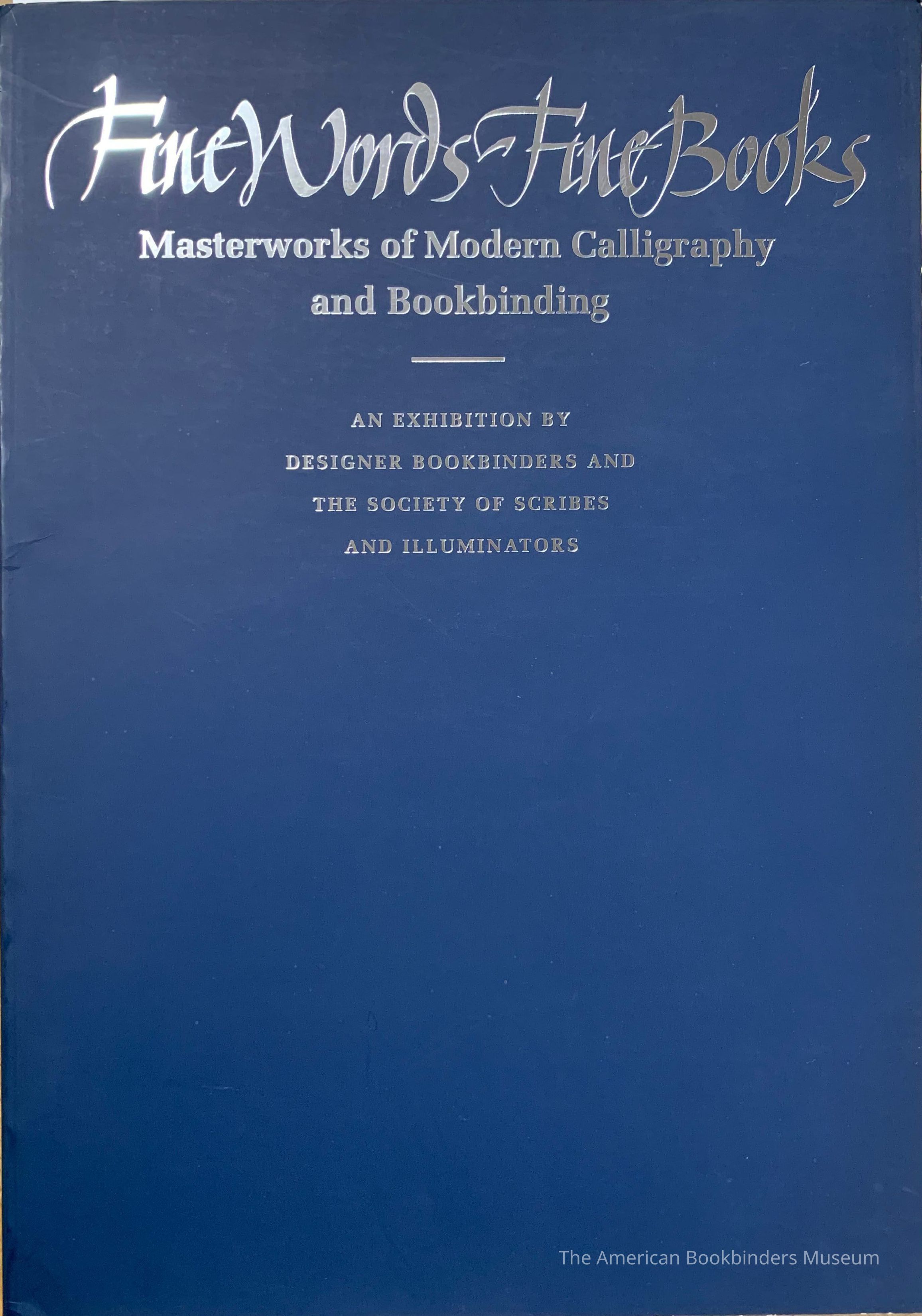 Fine words, fine books : masterworks of modern calligraphy and bookbinding : an exhibition by Designer Bookbinders and the Society of Scribes and Illuminators / [catalog design and production by Edward Wates].Entry/Object ID