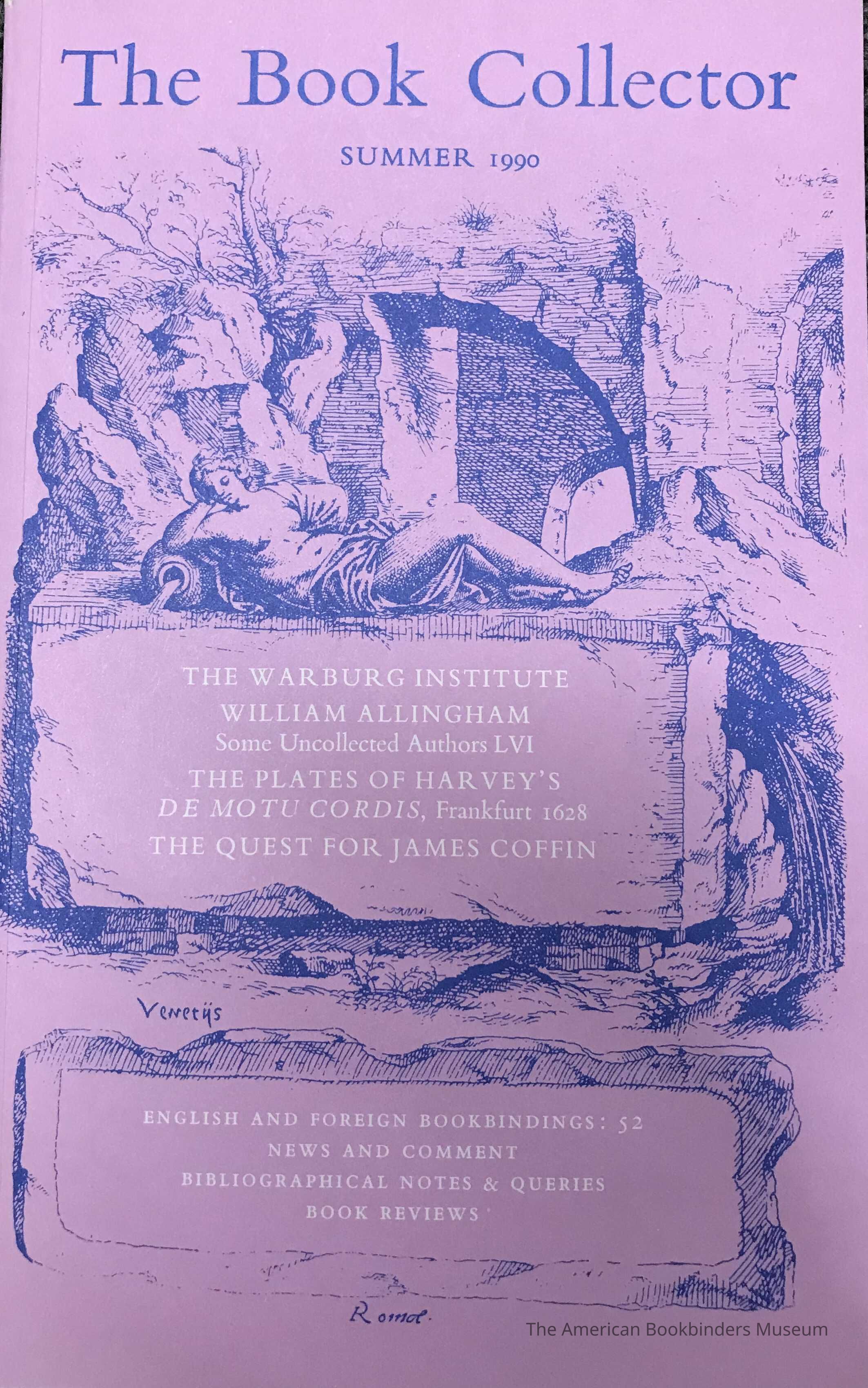 The Warburg Institute / William Allingham: Some Uncollected Authors LVI. Part I, Mark Samuels Lasner / The Plates of Harvey's De motu cordis, Frankfurt 1628, Roger Gaskell / The Quest for James Coffin, Sidney J. Kolpas / English and Foreign Bookbindings 52, John CollinsCollection