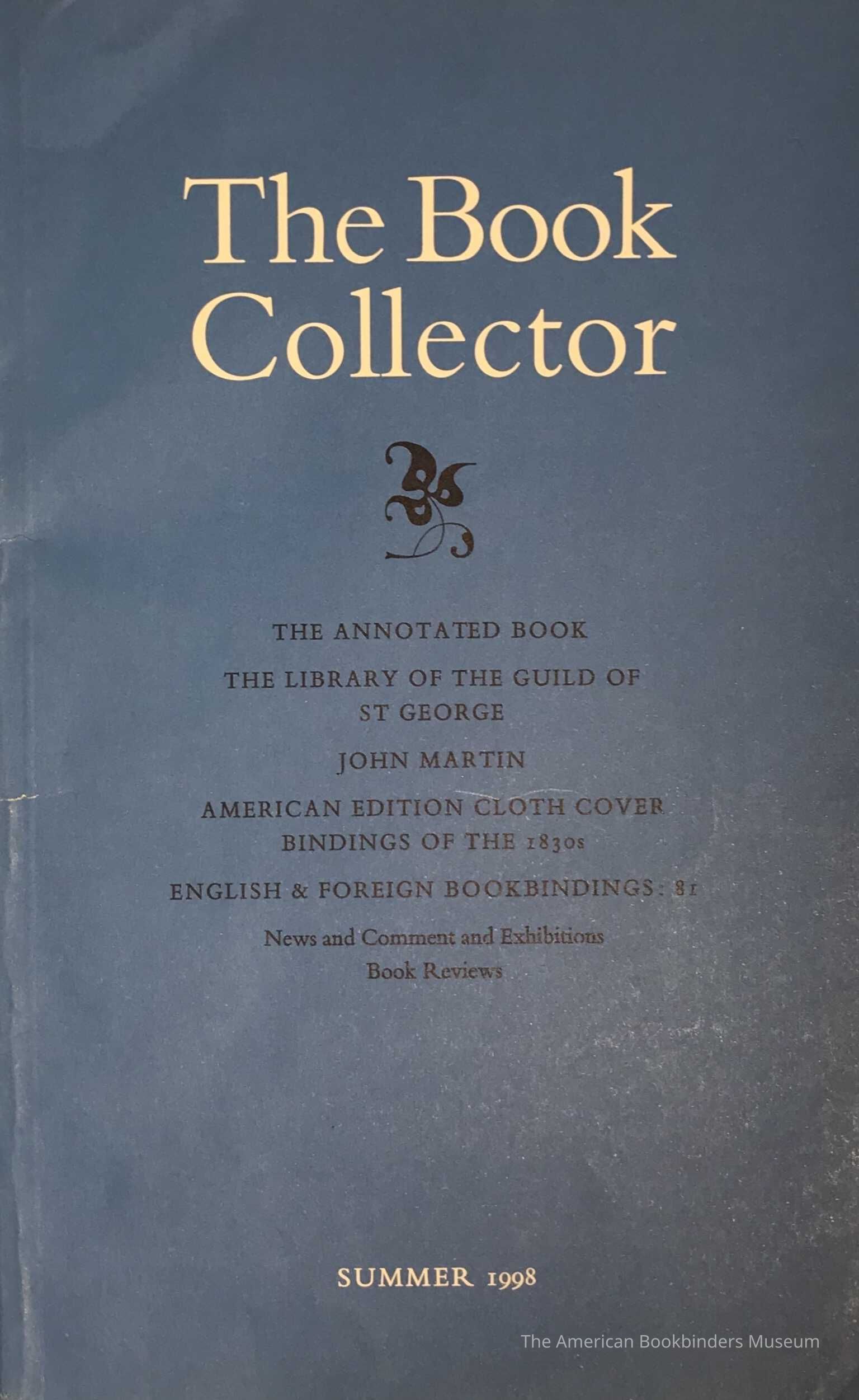 The Annotated Book / The Library of the Guild of St George, Unfamiliar Libraries XVIII, James S. Dearden / John Martin and the Encouragement of Original Wood-Engraving for Illustration c1833-43, Paul Goldman / American Edition Cloth Cover Bindings of the 1830s, E.B.M. King / English and Foreign Bookbindings 81Collection