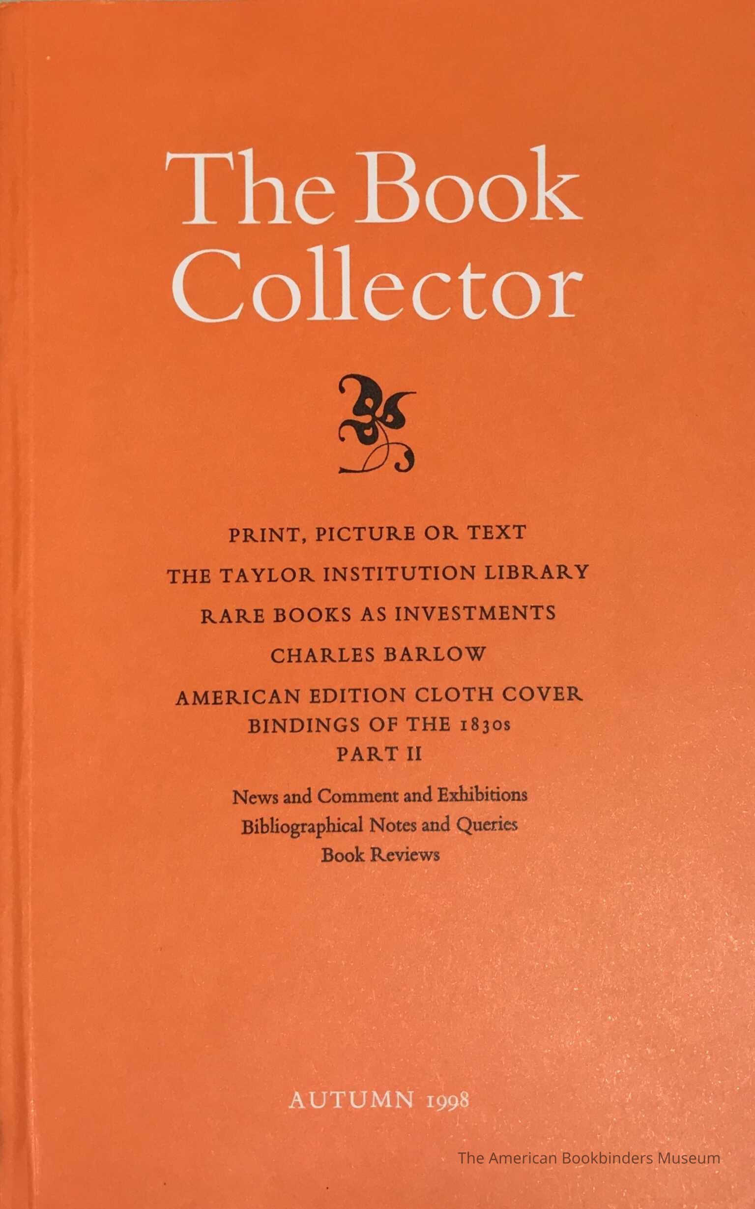 Print, Picture or Text / The Taylor Institution Library Unfamiliar Libraries XXIX, Giles Barber / Rare Books as Investments, Kenneth Hill / Charles Barlow Portrait of a Bibliophile XXXIV, Richard Charteris / American Edition Cloth Cover Bindings of the 1830s Part II, E.M.B. KingCollection