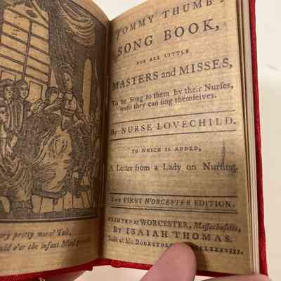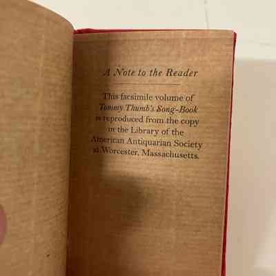 Facsimile reproduced from Library of the American Antiquarian Society. Red shiny cloth cover with gold title. Book of nursery rhymes.Collection