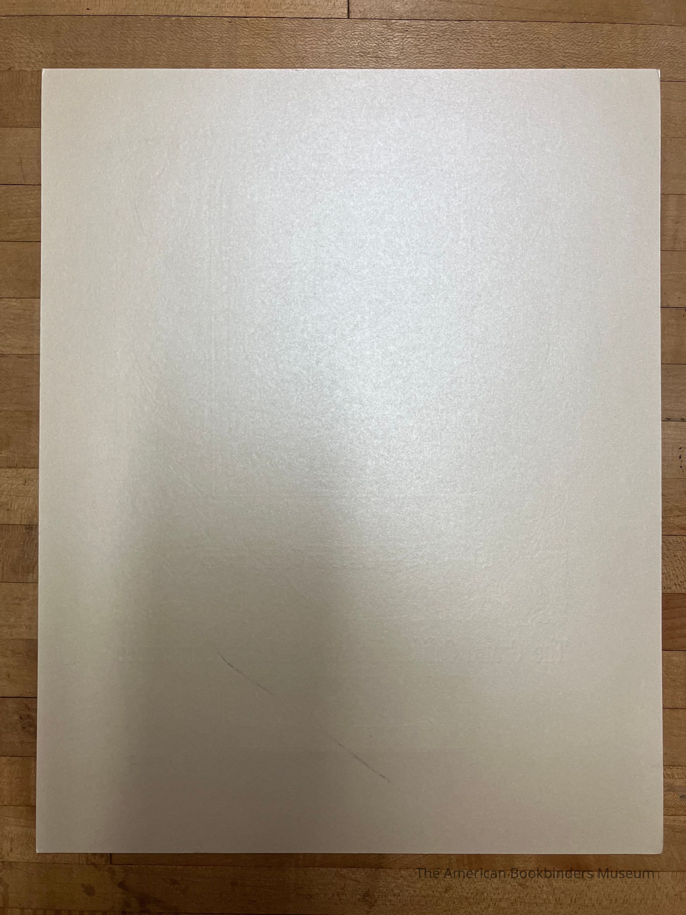 In the middle of the lower part of the frame is the title in red. Below the frame is context and a band of the same design. At the bottom is printing information, in blue. Paper is cream with a fine shimmer.Collection
