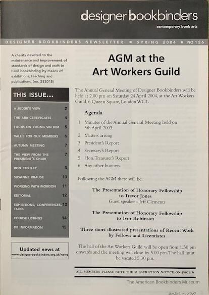 Designer Bookbinders newsletter; No.126; Spring 2004Entry/Object ID