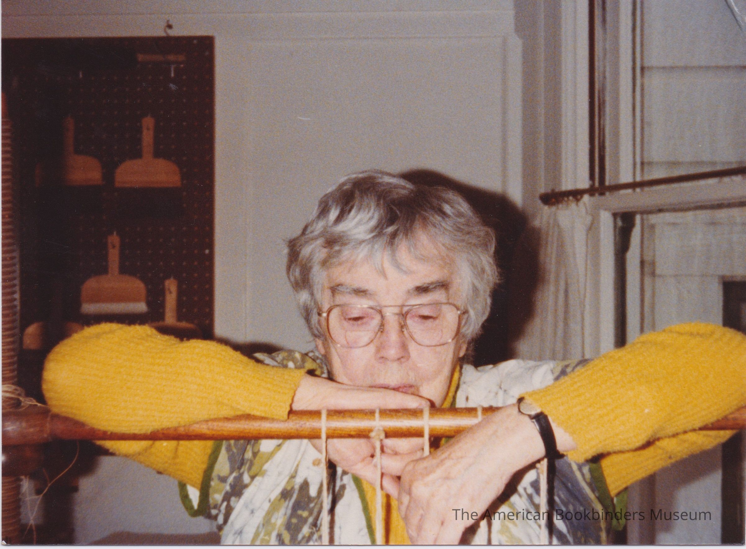 Stella Patri at a sewing frame. Same scene as 2023.9.11.bk.Photograph Details