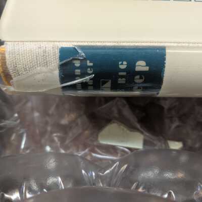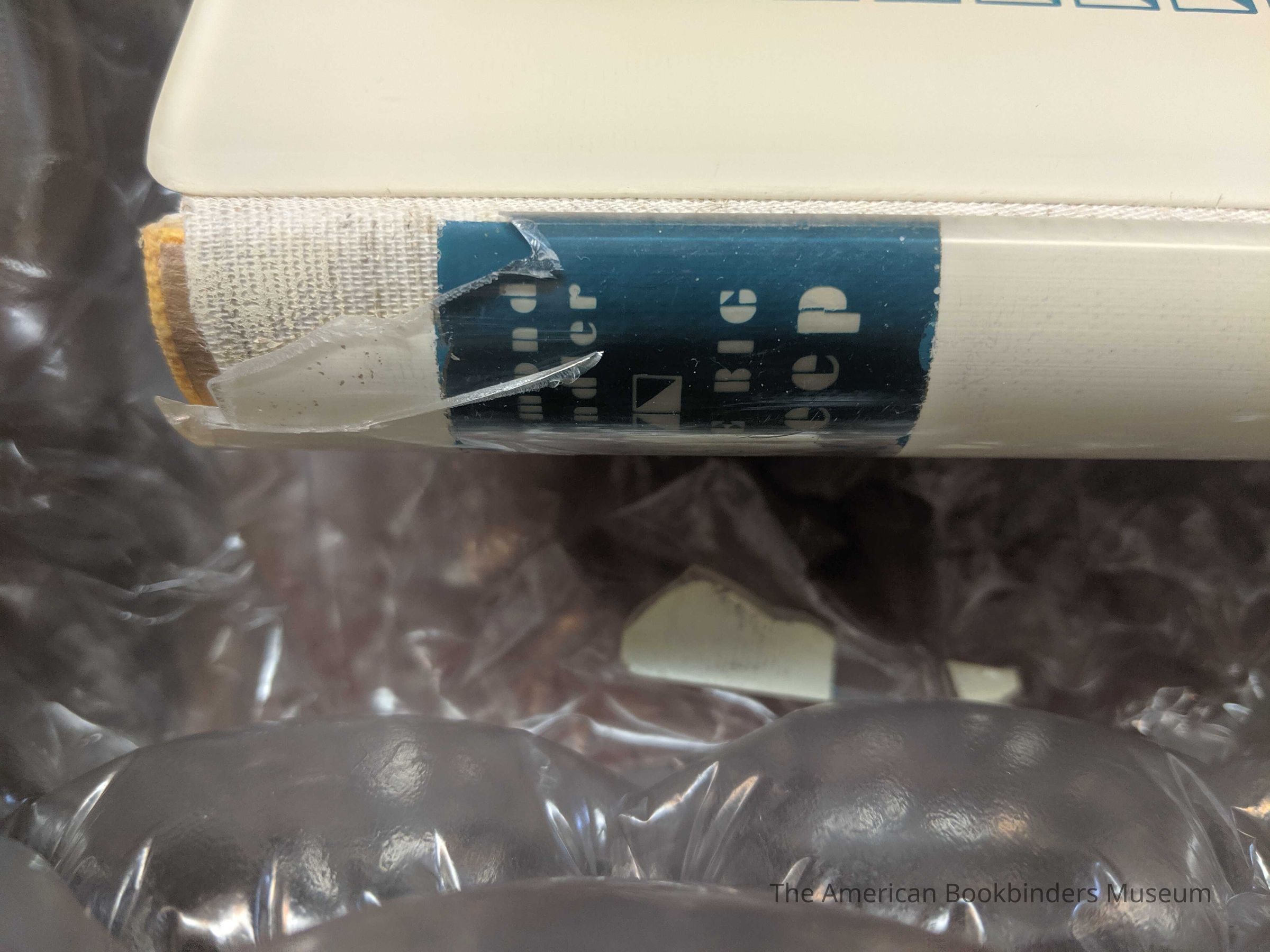 Cover and spine made out of Plexiglass with the title and decoration printed on it in blue. Linen and paper joints.
