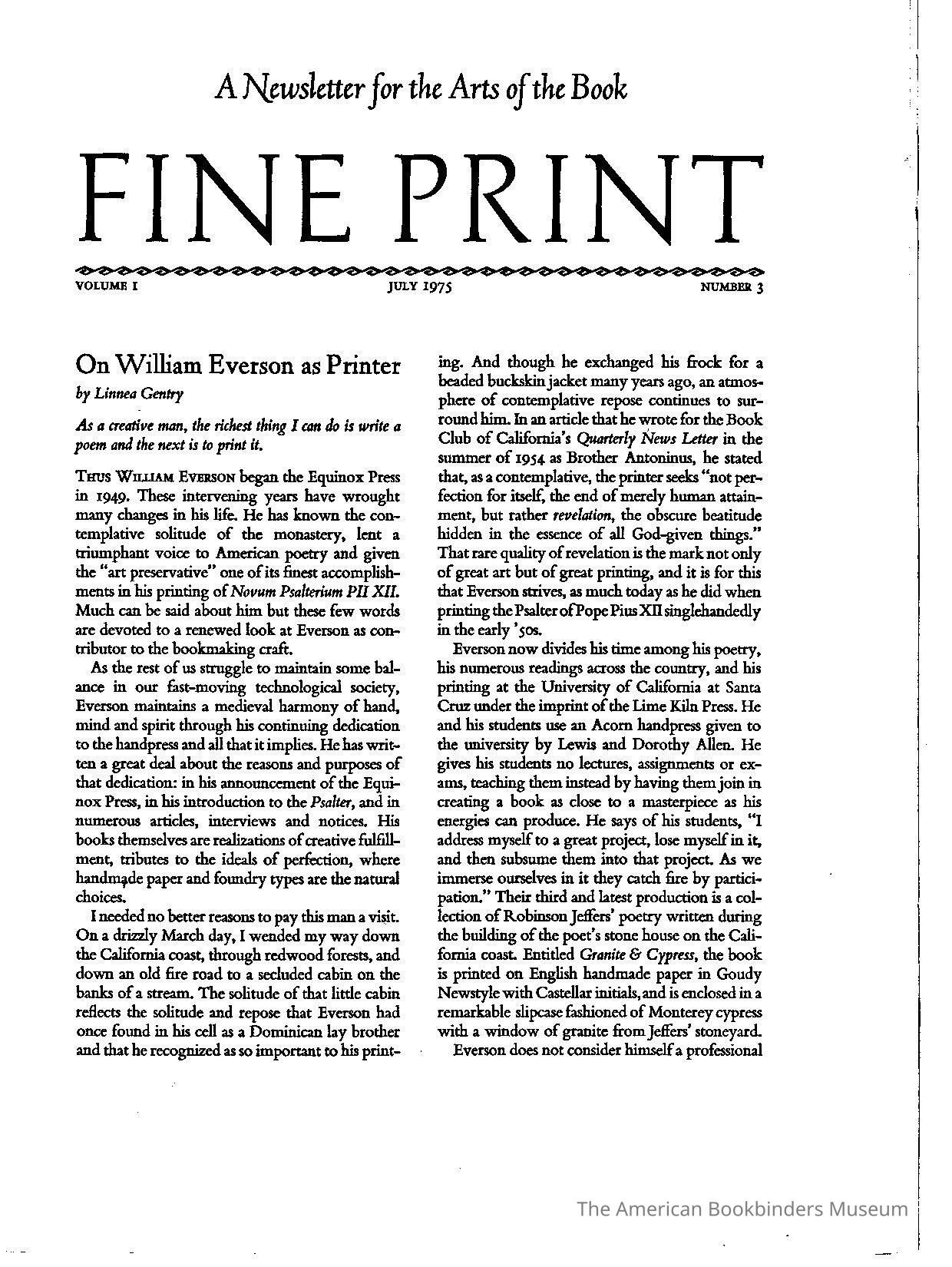 Fine Print; Vol 1 No 3 July 1975Entry/Object ID