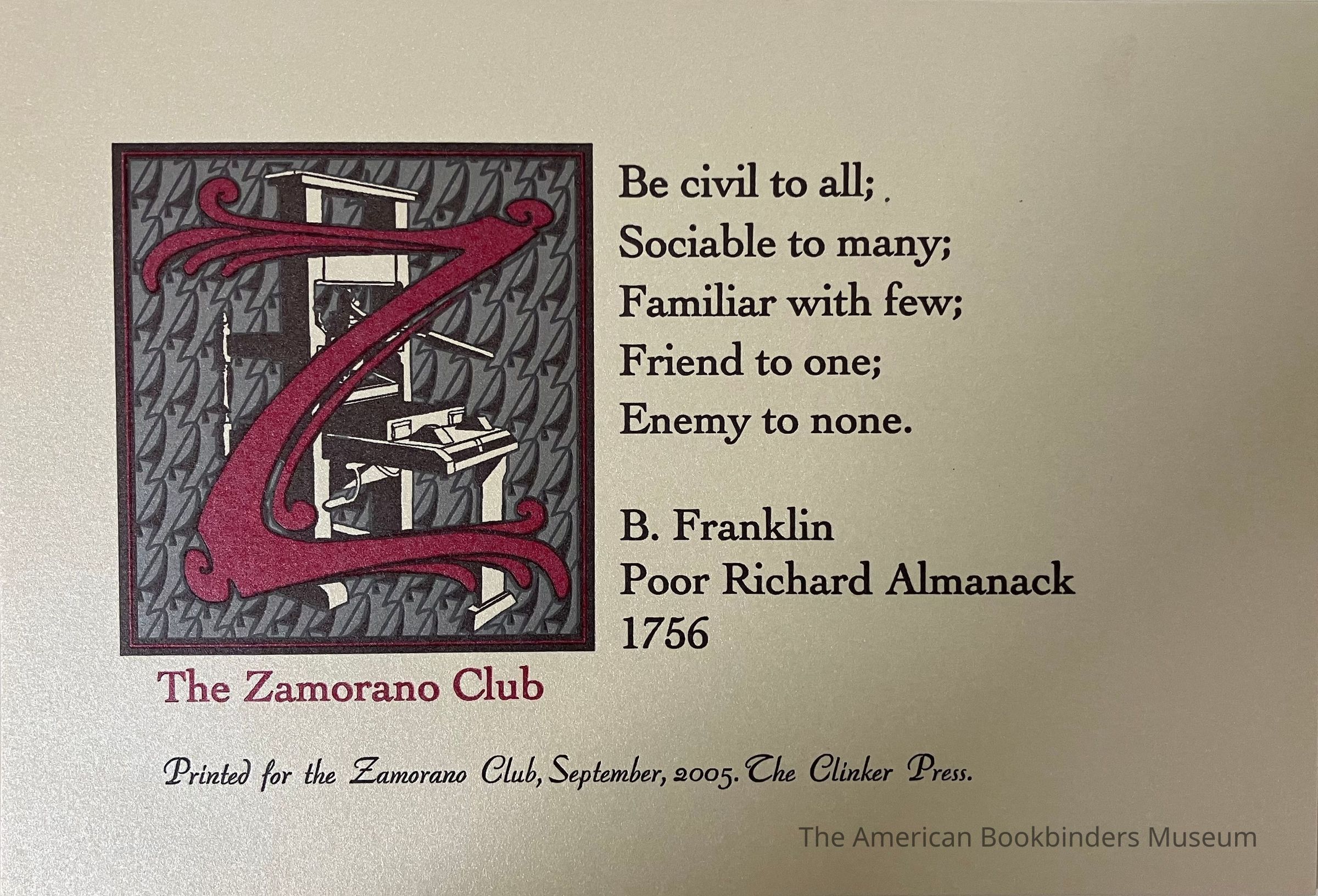 On the left is a large image of a stylized 'Z' superimposed on an image of a printing press.Collection