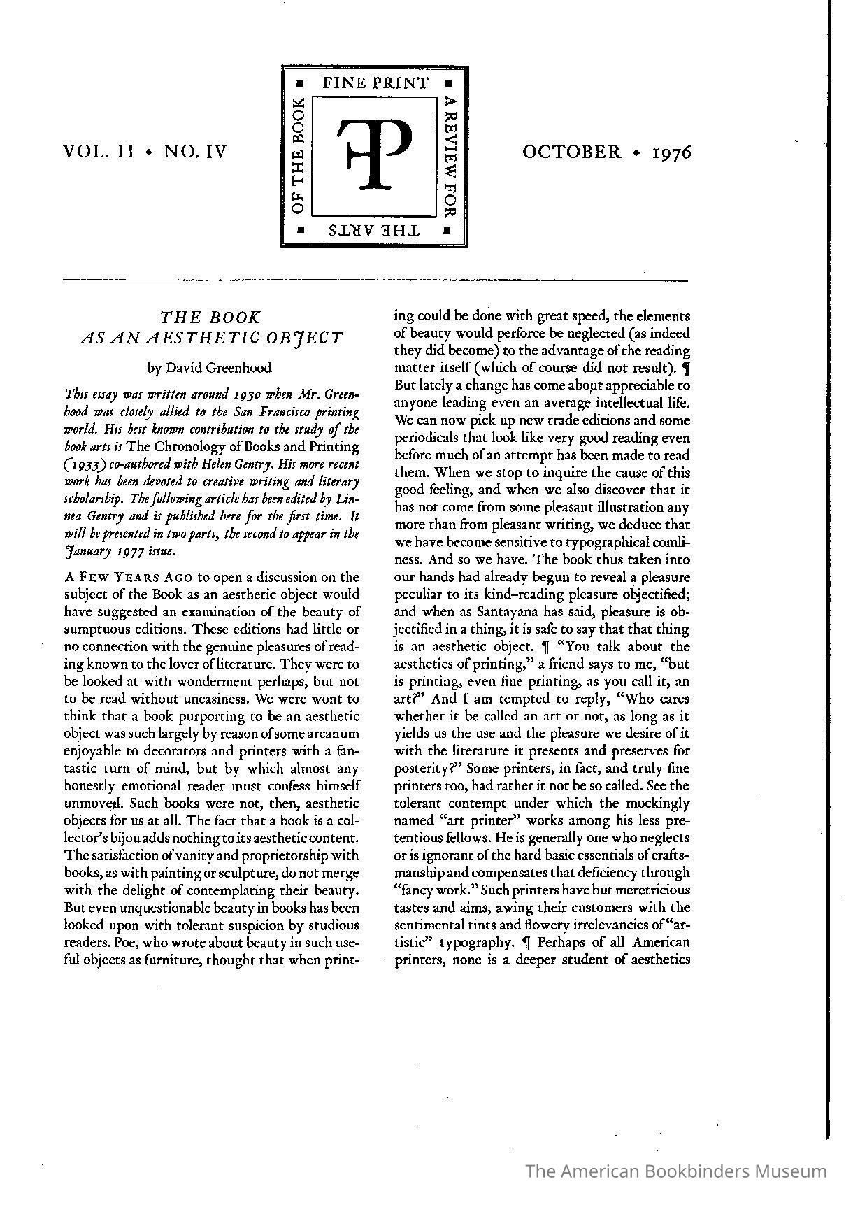 Fine Print; Vol 2 No 4. October 1976Entry/Object ID