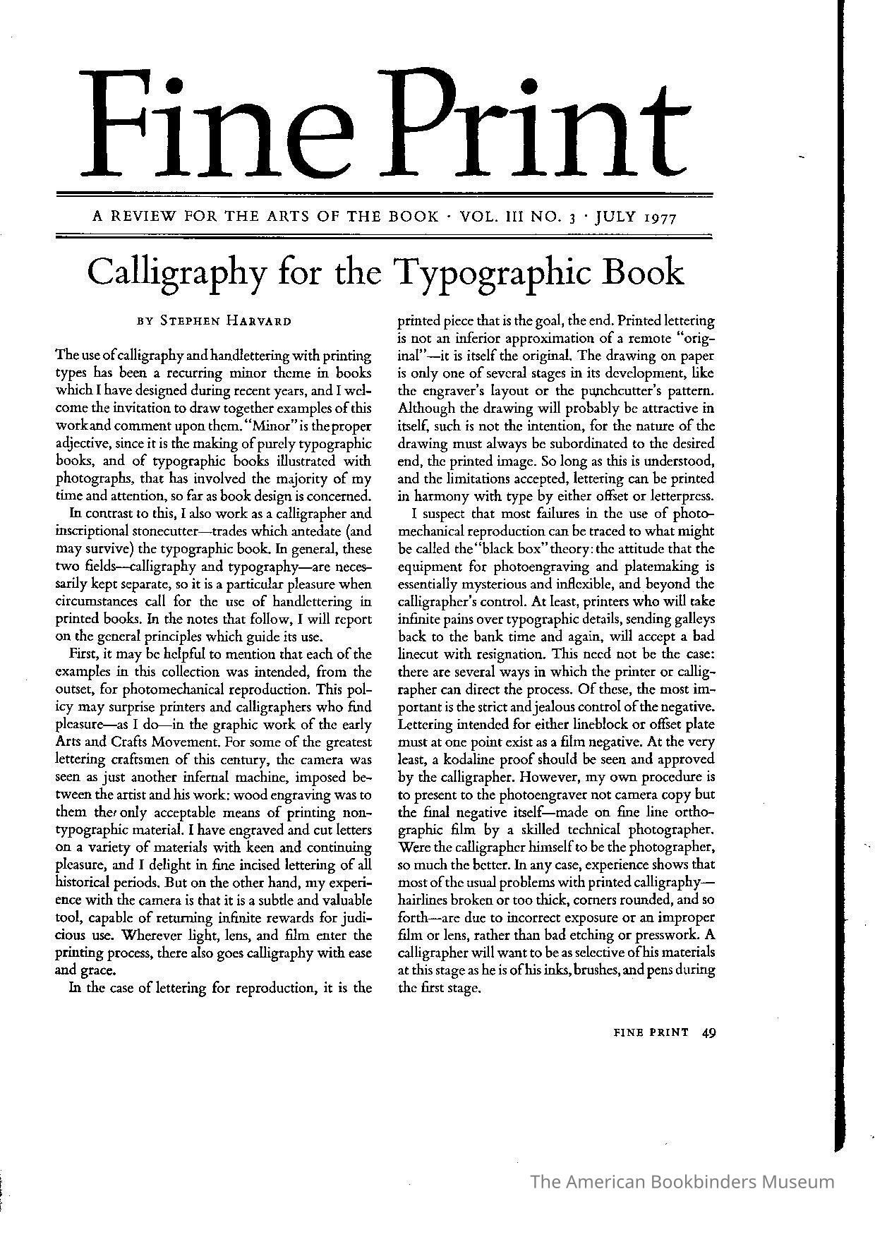 Fine Print; Vol 3 No 3. July 1977Entry/Object ID