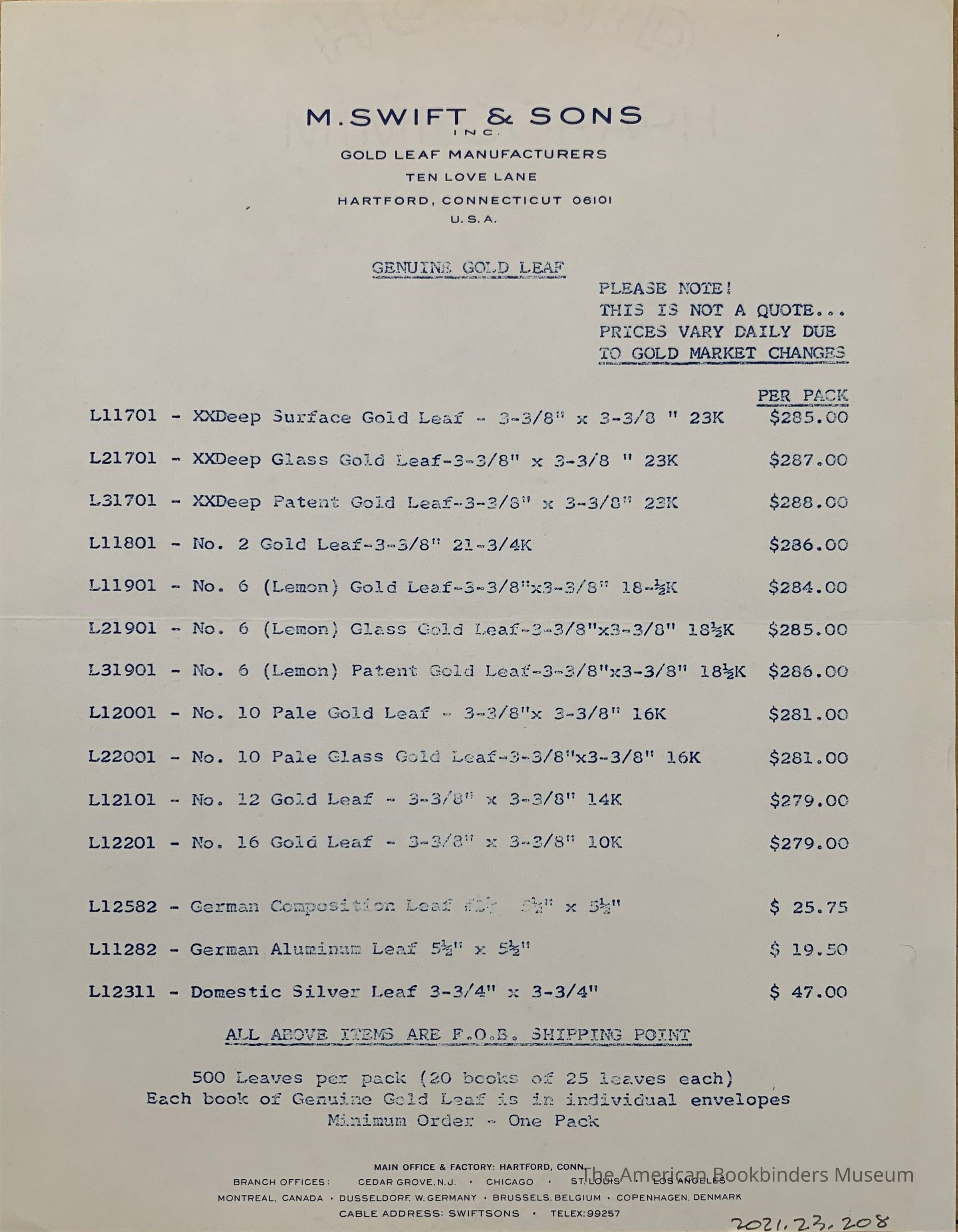M. Swift & Sons ... Genuine Gold Leaf.Entry/Object ID