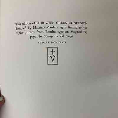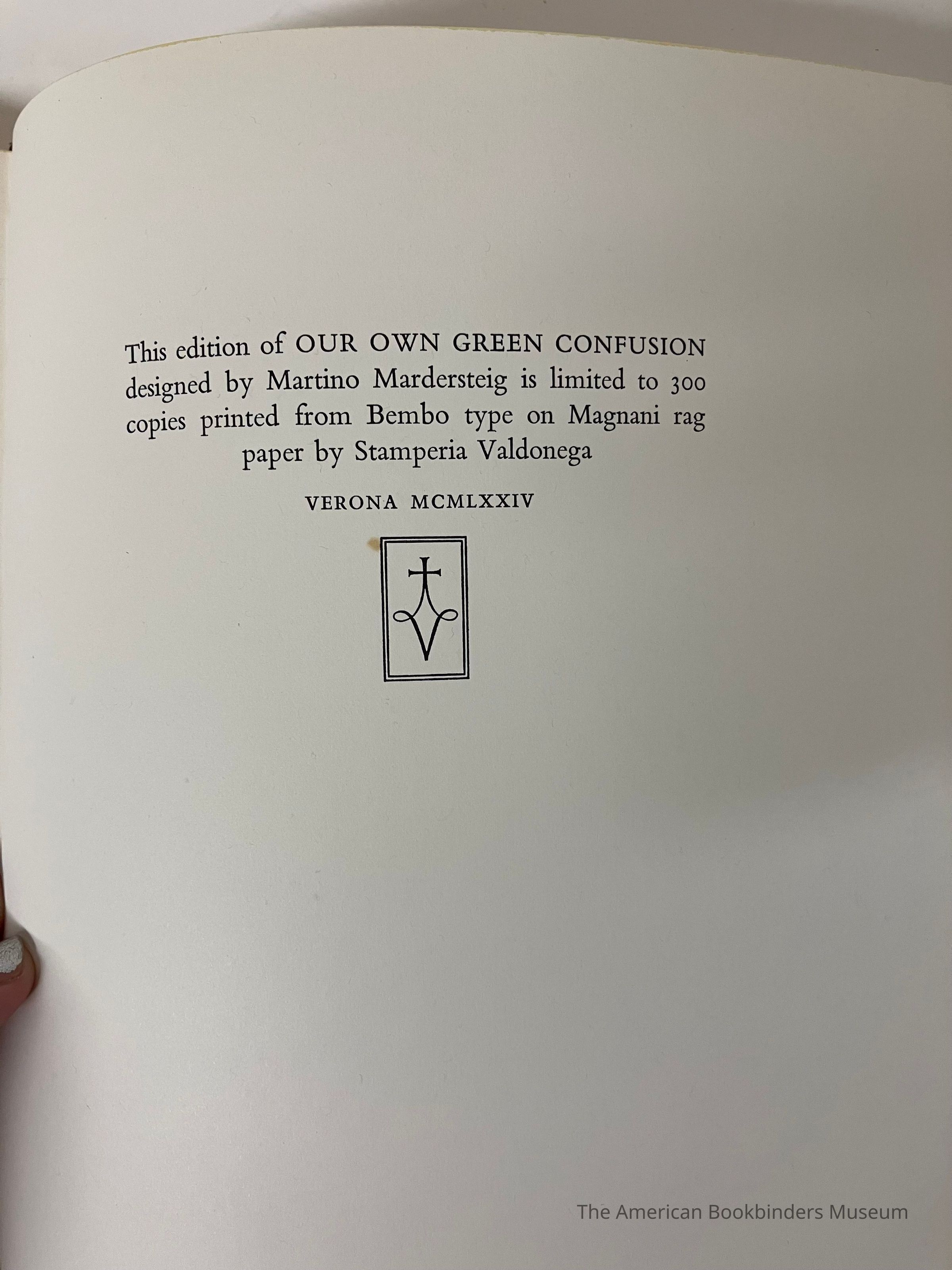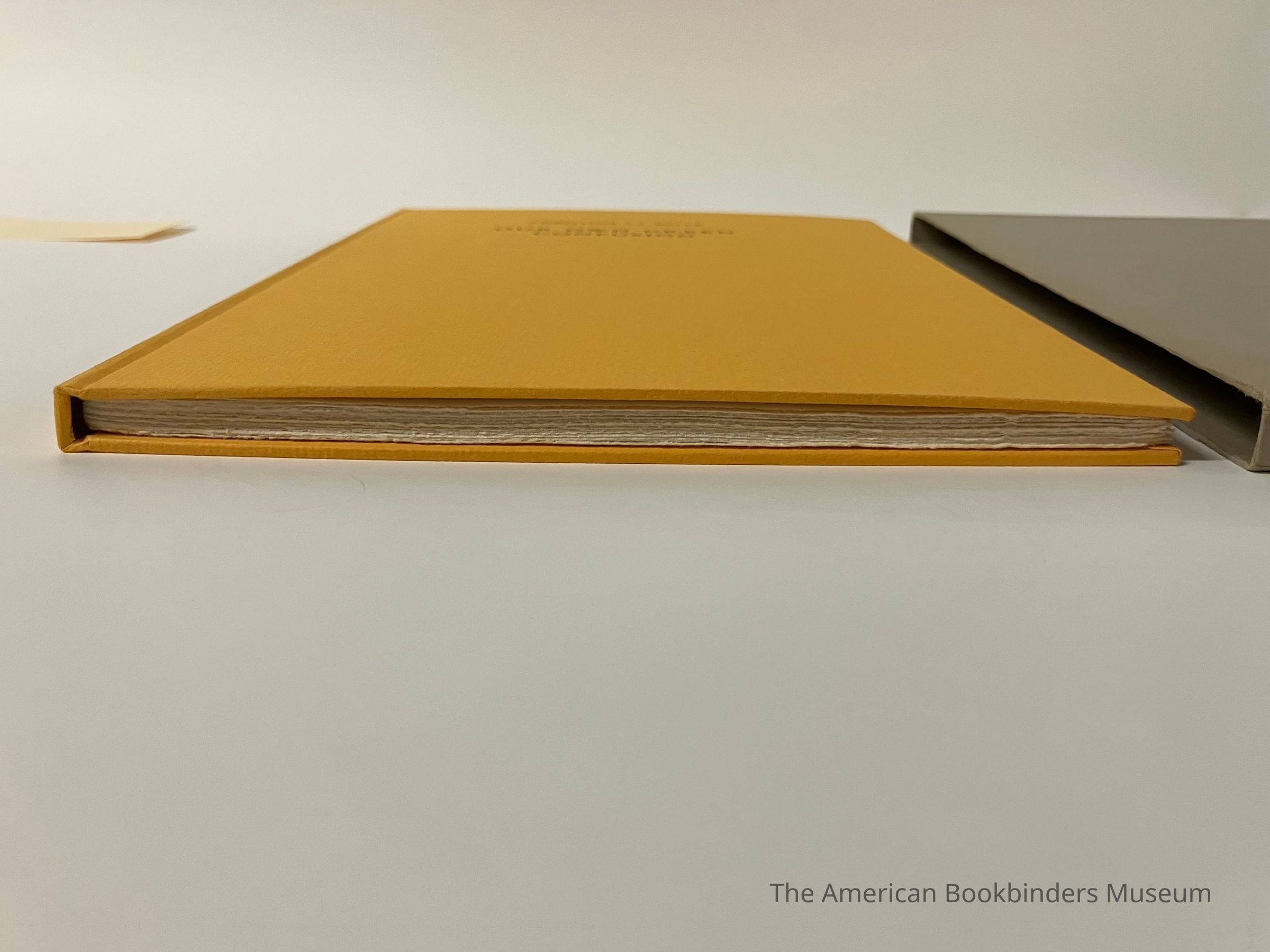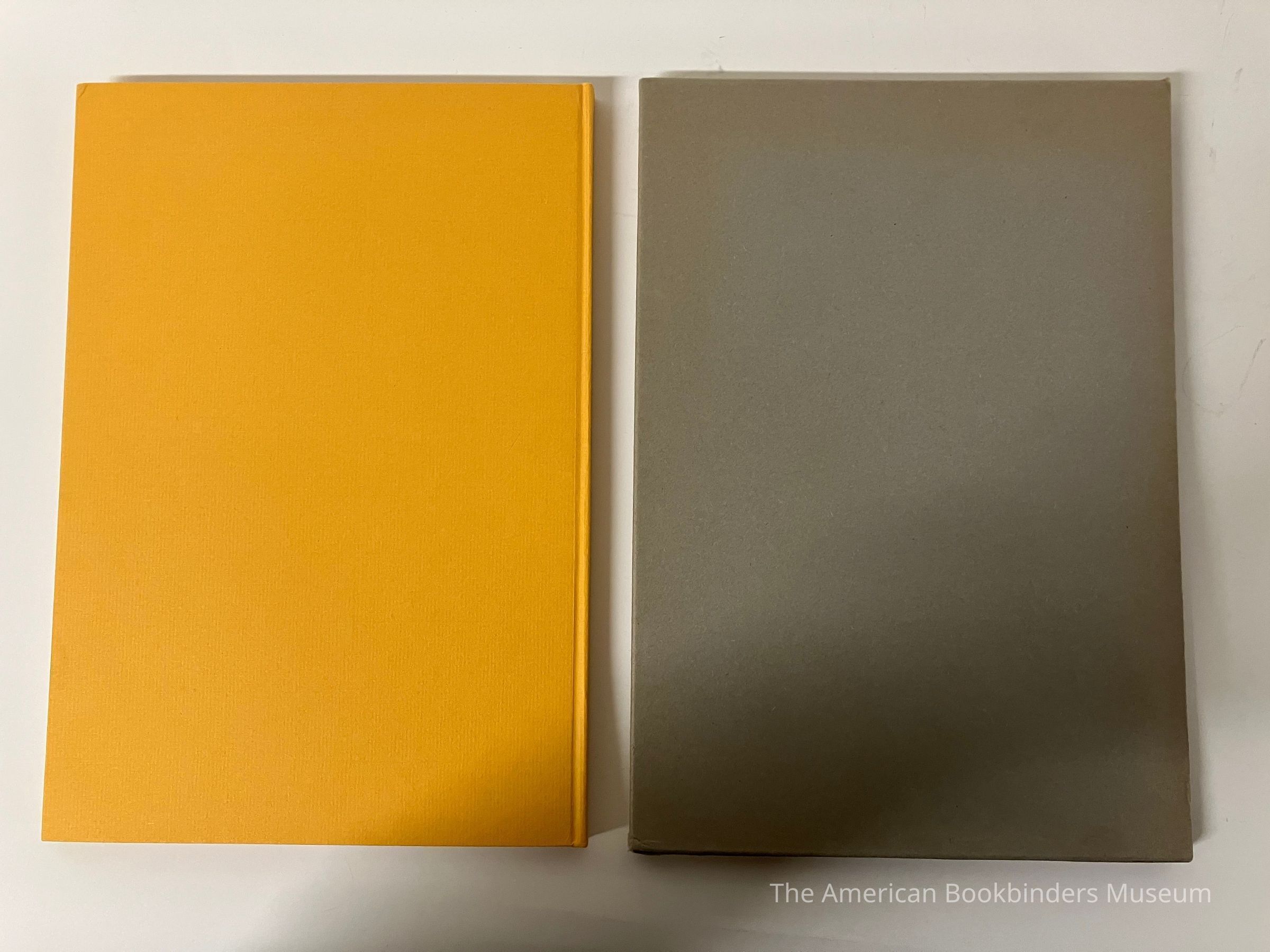 Orange book with plain gray slipcover. Both covered in paper. Book of poetry. Colophon at back. 59p. Untrimmed edges.Collection