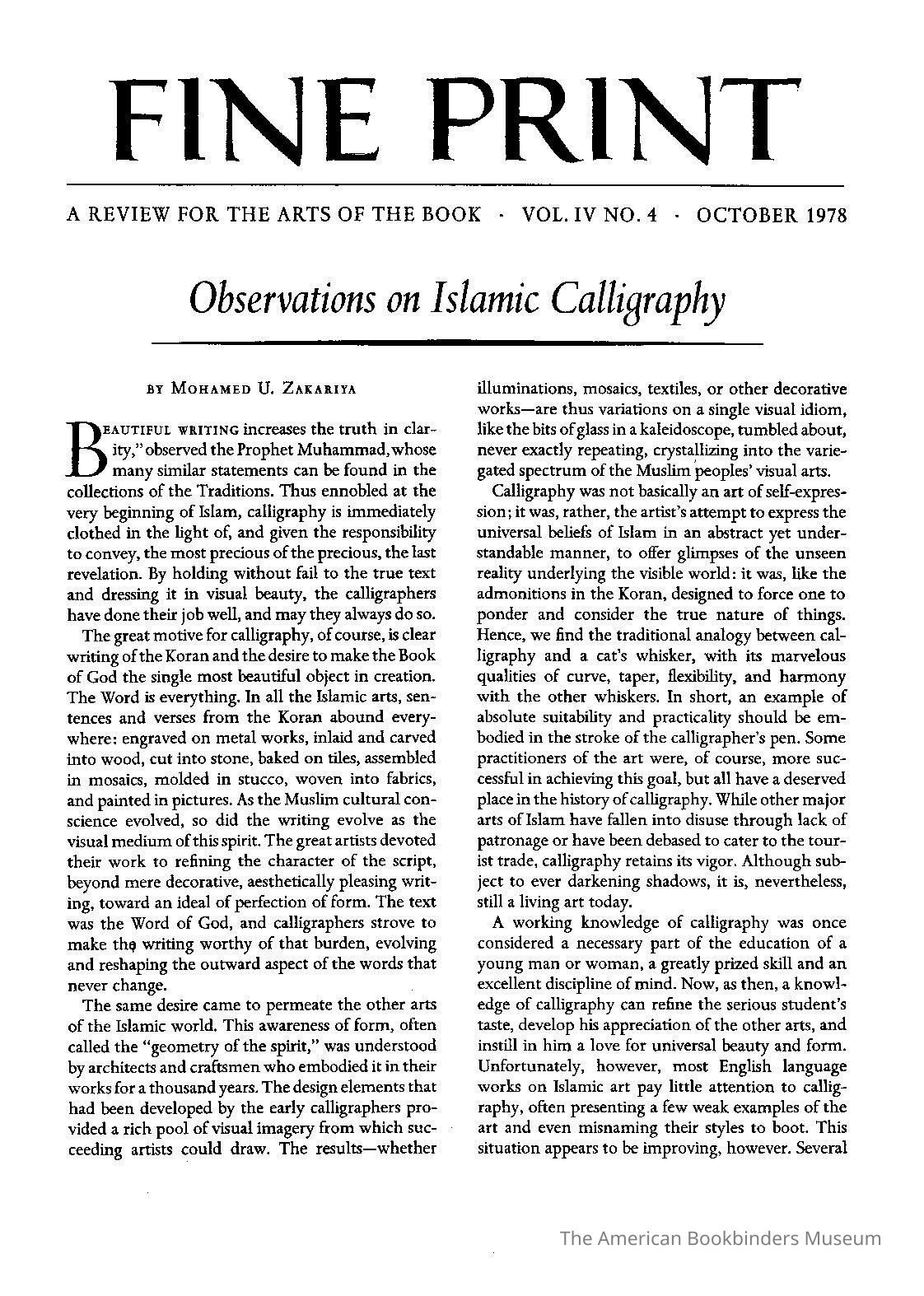Fine Print; Vol 4 No 4. October 1978Entry/Object ID