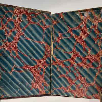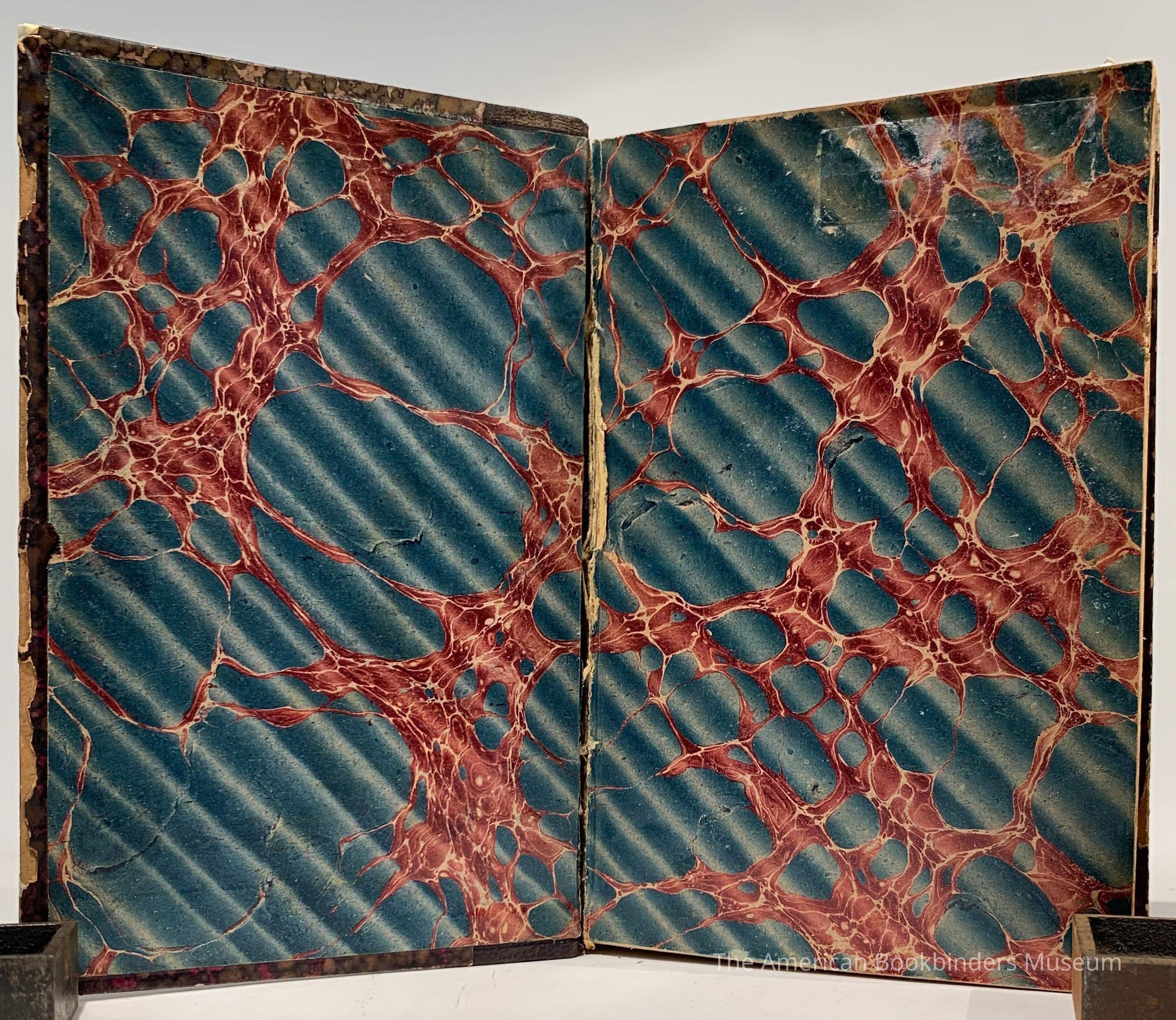 Quarter-bound black leather with marbled boards; marbled endpapers