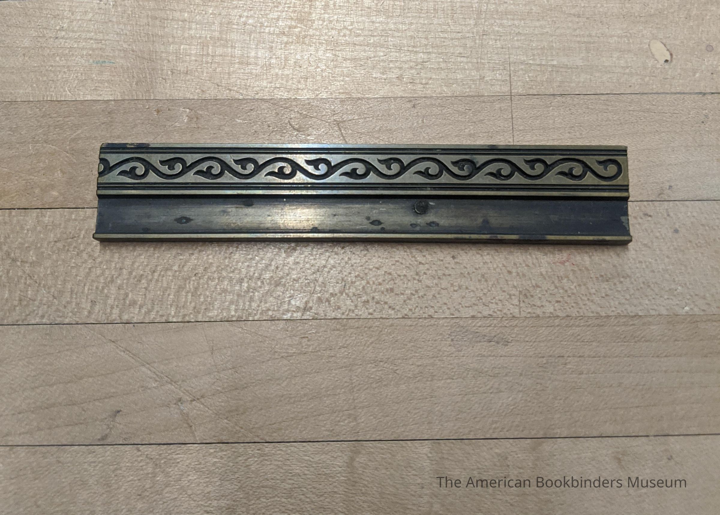 Simple foliated scroll, with a double border on each side. On the bottom, there is blank space approximately equal in thickness to the foliated scroll design and bordered on the bottom by a single line.
