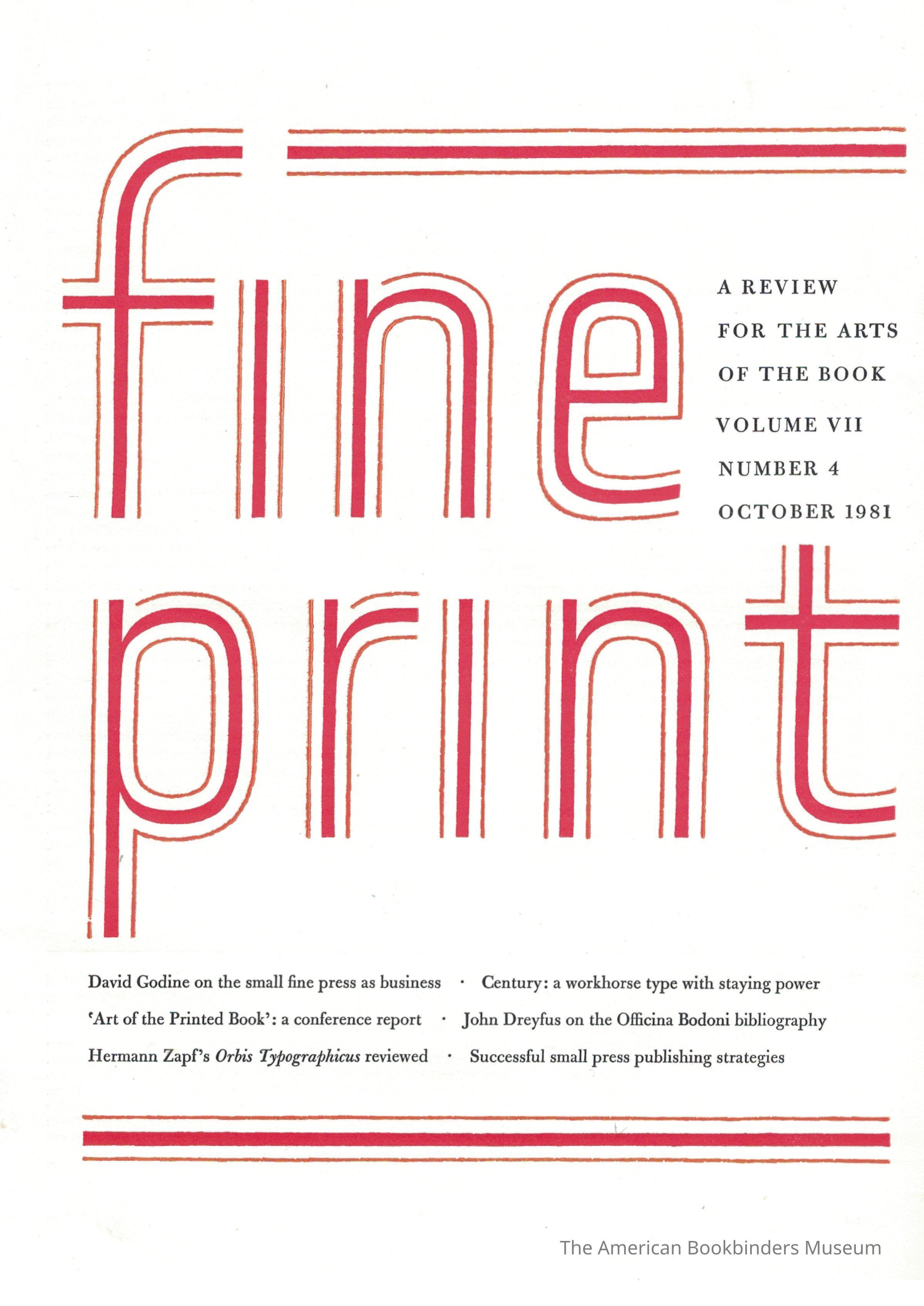 Fine Print; Vol 7 No 4. October 1981Entry/Object ID