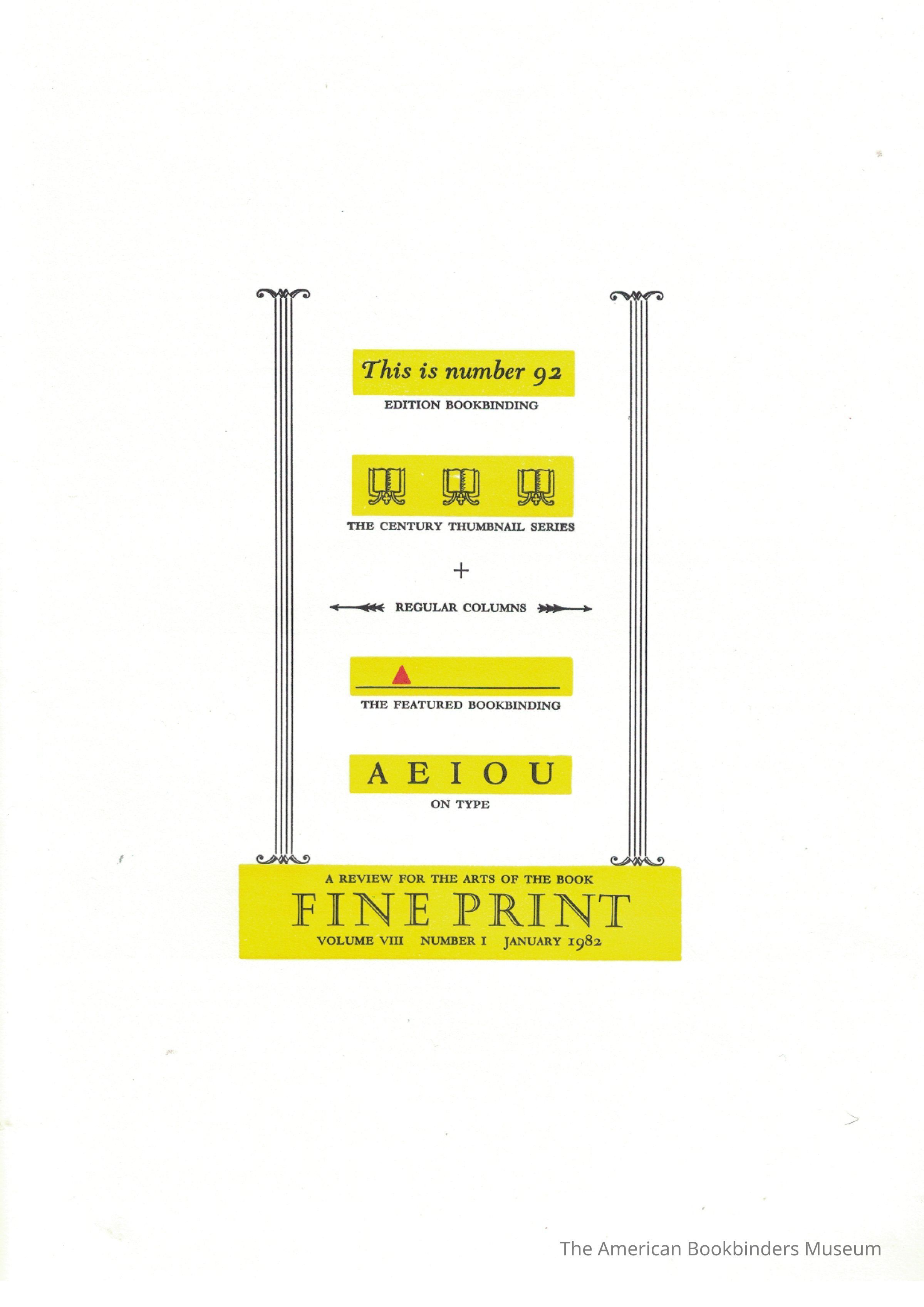 Fine Print; Vol 8 No 1. January 1982Entry/Object ID