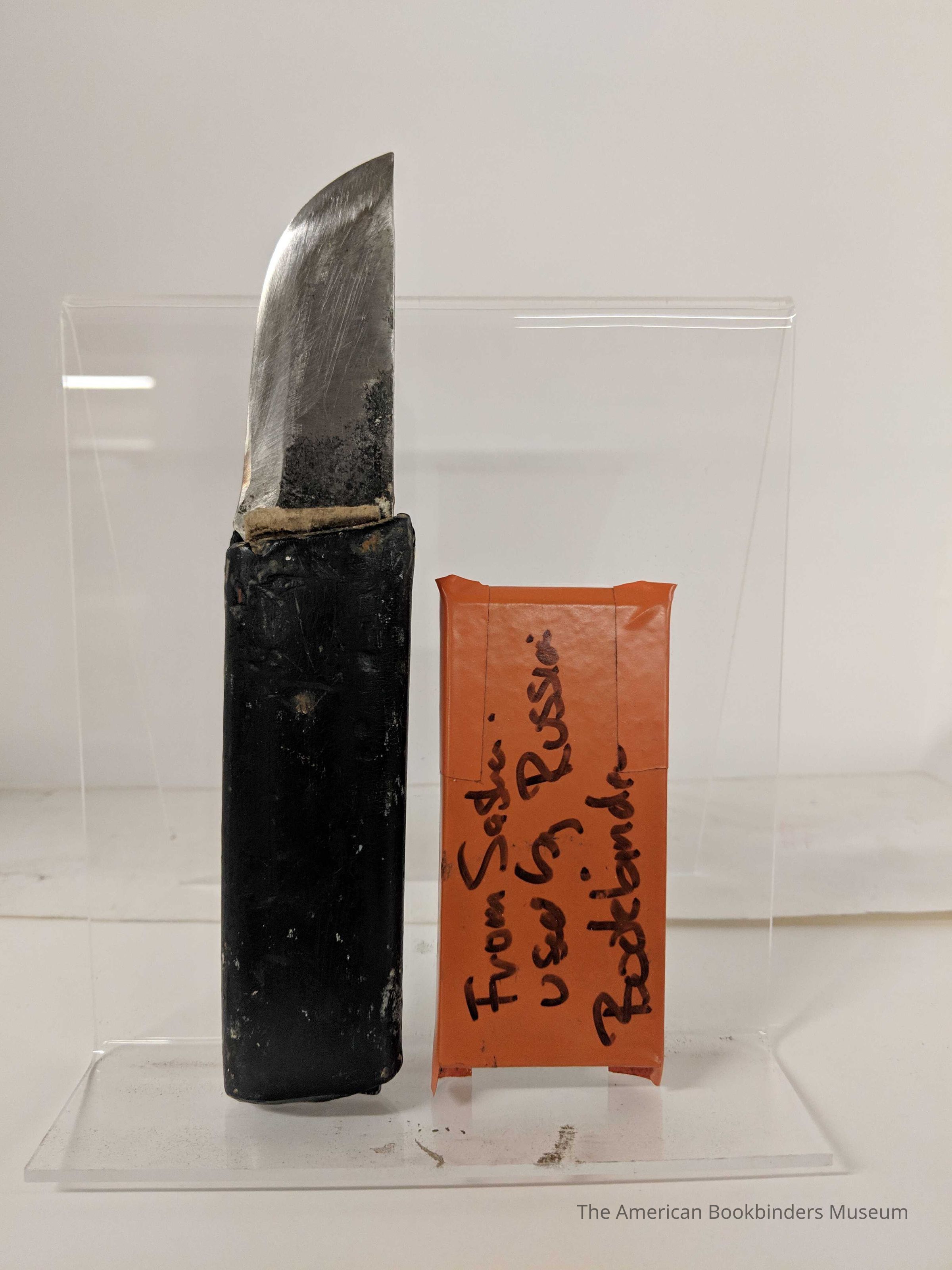 Handmade knife for bookbinding. Probably a paring knife.