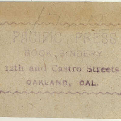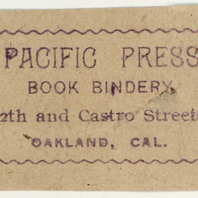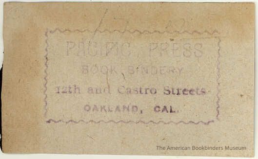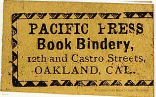 *There is a Pacific Press Publishing in San Francisco Ca. that also did bookbinding. We have no evidence that they are related. However it seems strange that two Pacific Press companies would operate within eight miles of each other and do bookbinding .