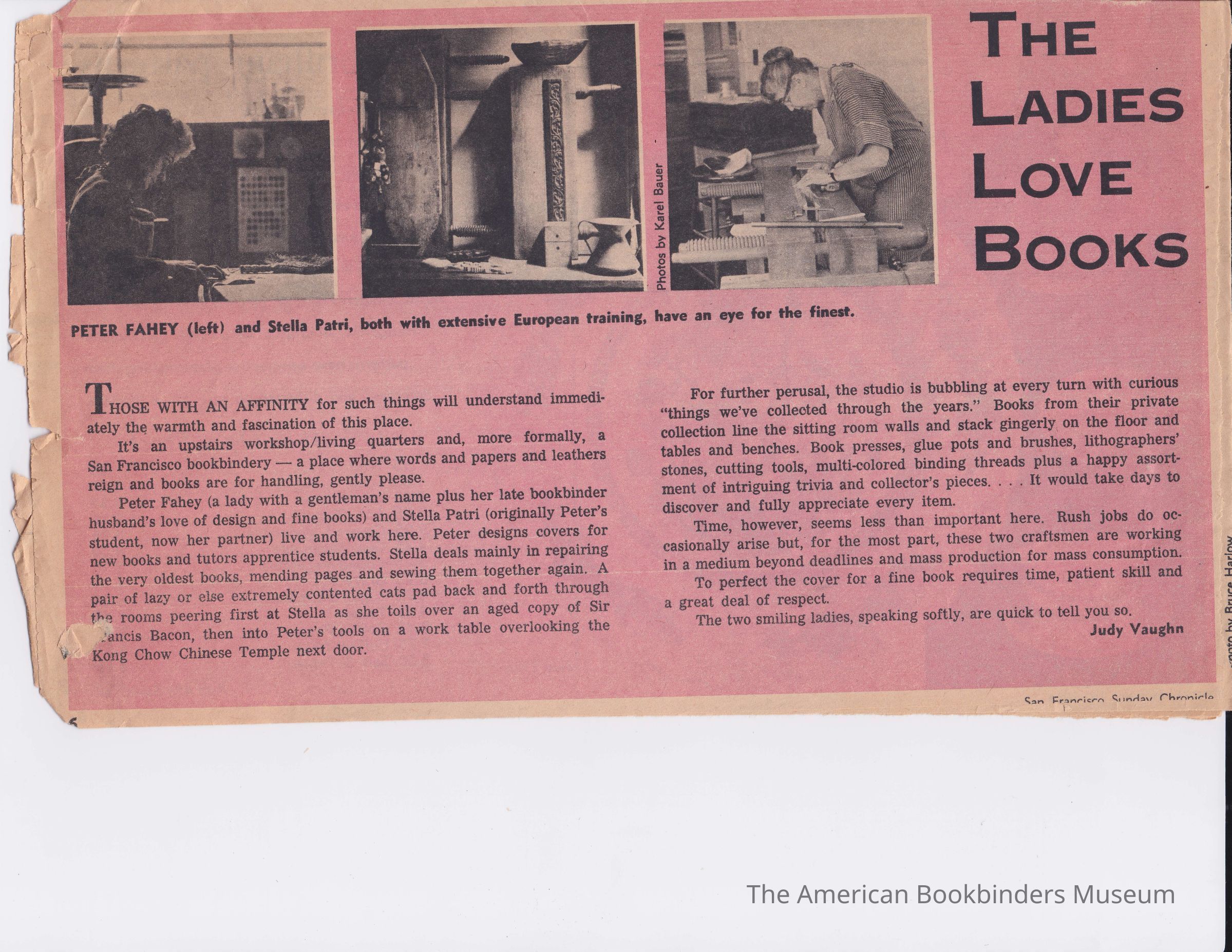 Newspaper article on Peter Fahey and Stella Pari on their studio.Collection