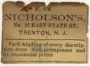 2. (1865) 22 East State st., " Wm. T. Nicholson, Plain and Fancy Book-Binder"