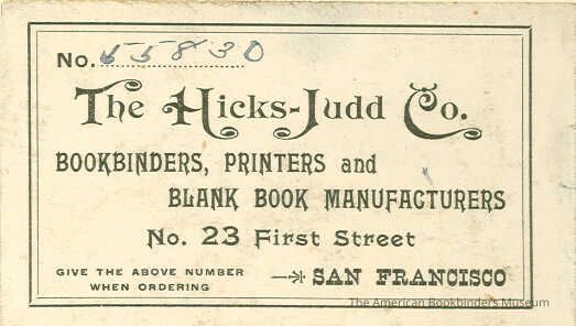 8. " This Directory was bound by The Hicks-Judd Co." S.F. City Directory,
