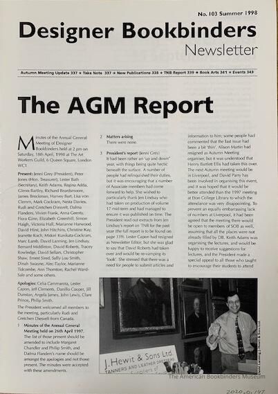 Designer Bookbinders newsletter; No.103; Summer 1998Entry/Object ID