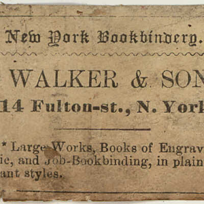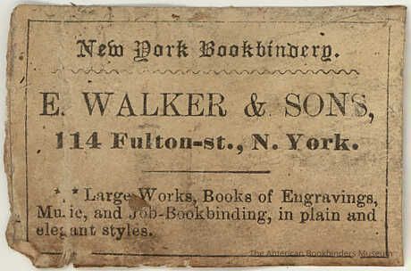 3. E. Walker & CO. 114 Fulton Street"This is the store for cheap, substantial and elegant Bookbinding, Bibles, prayer and Hymn Books, in every style of binding. Merchants Account Books, Stationery and Standard Works, constantly on hand and at low prices for cash."