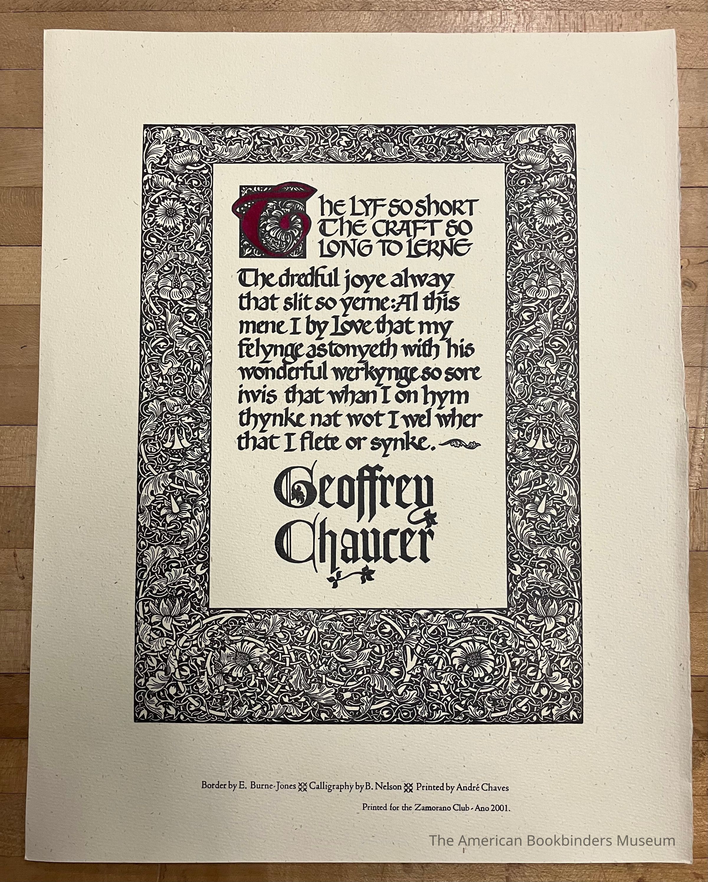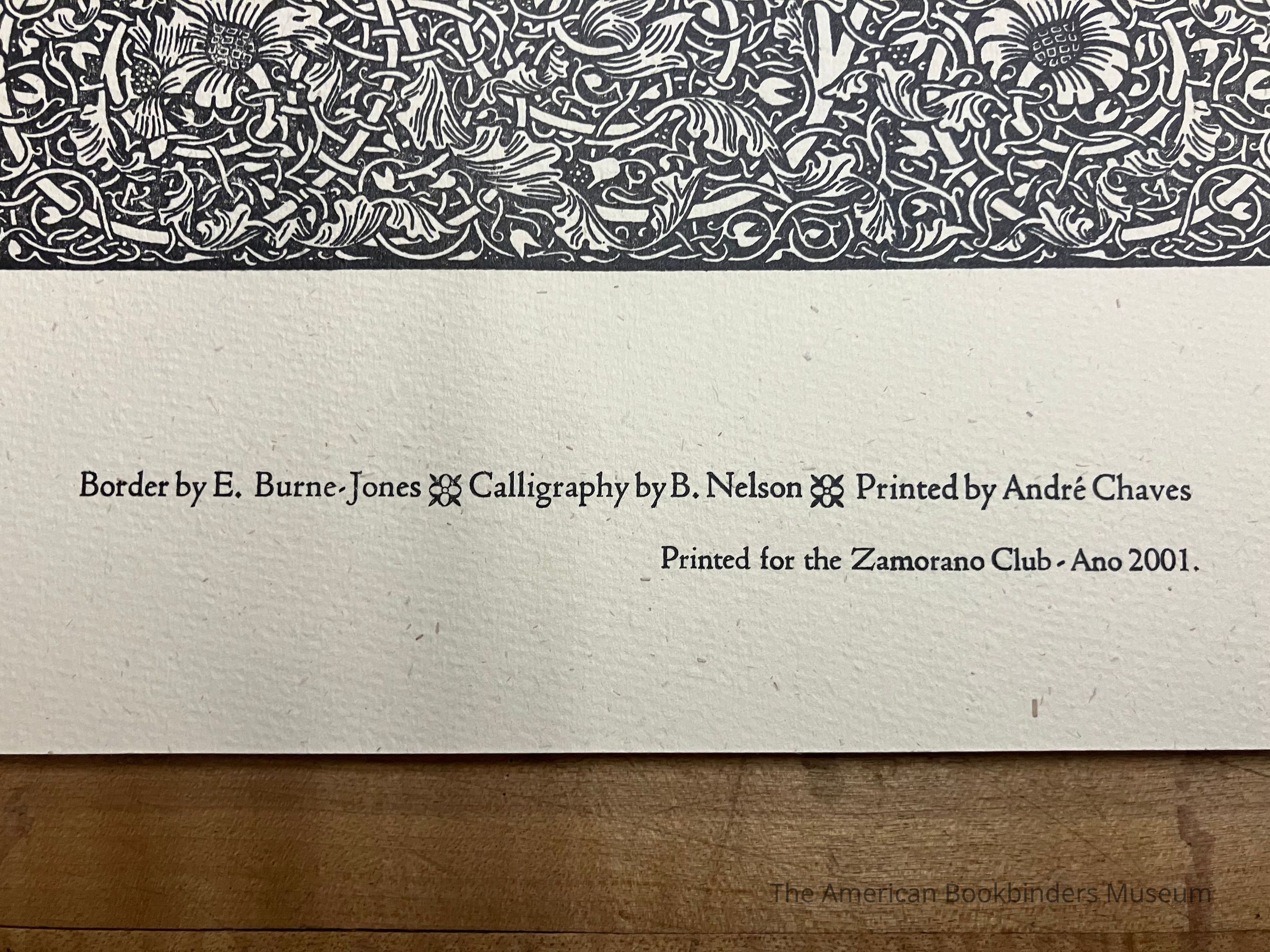 Border by E. Byrne-Jones. Calligraphy by B. Nelson. Printed by Andre Chaves.Relationships