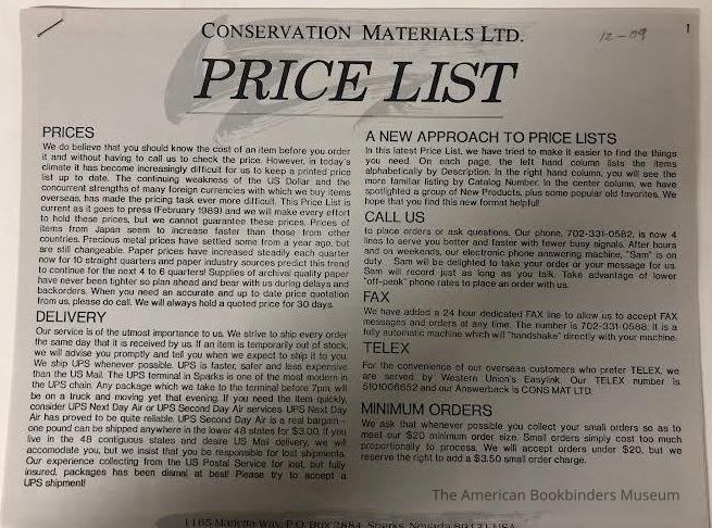 Conservation Materials Ltd. Price ListEntry/Object ID