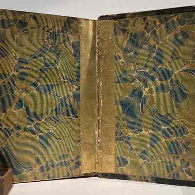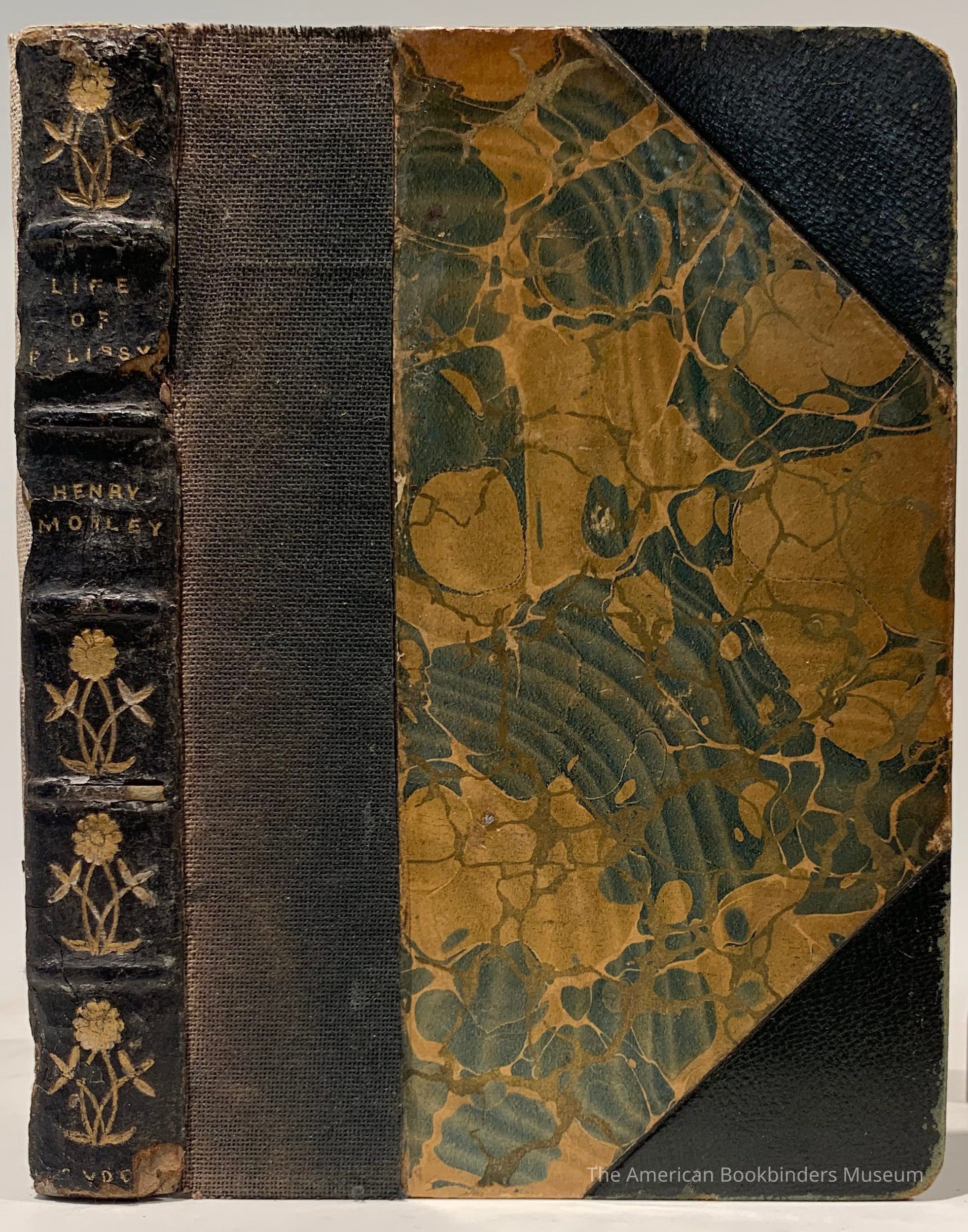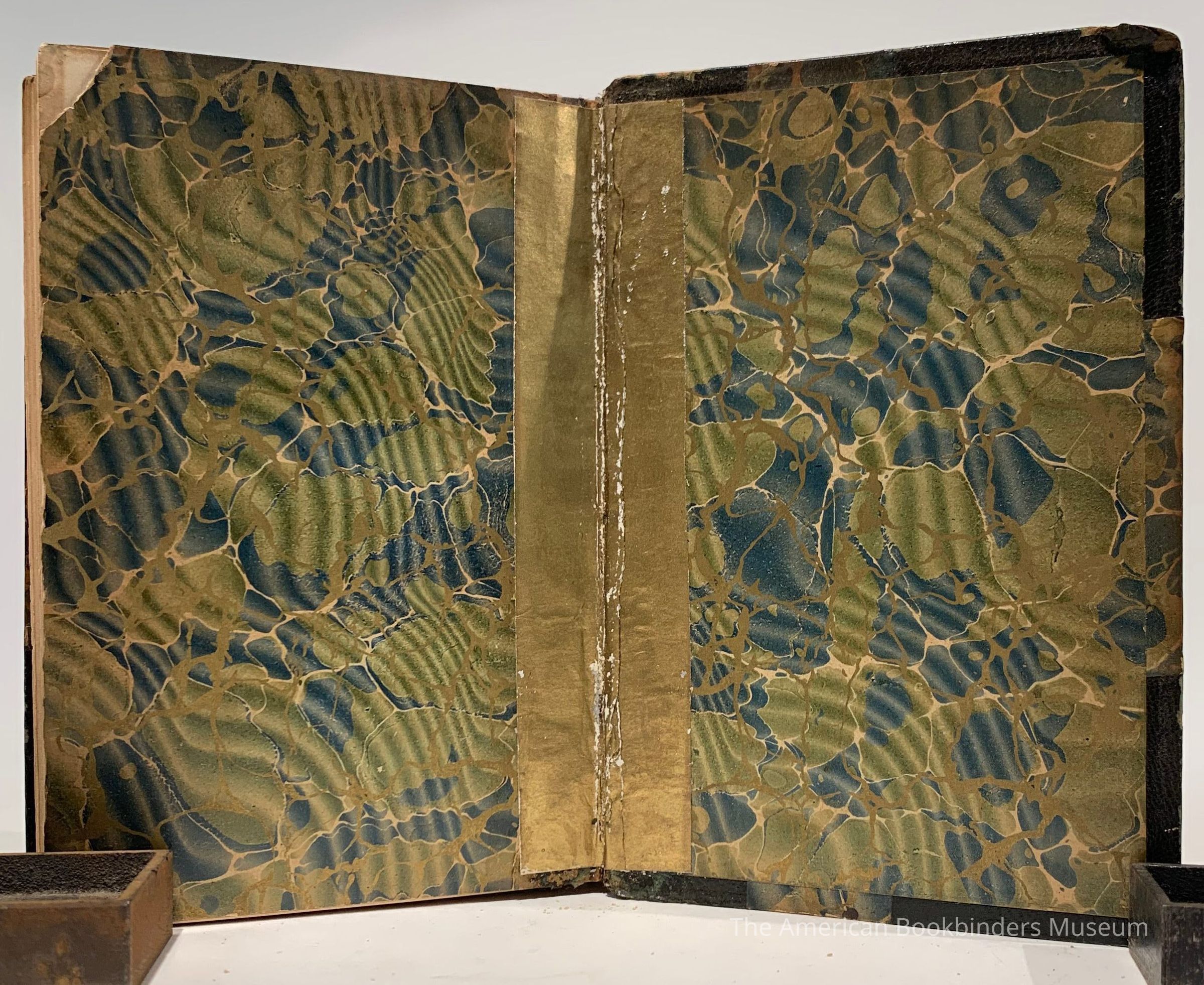 Bound in black half-leather; boards covered with marbled paper; similar marbled endpapers; gilt spine title and decoration; gilt top edge.