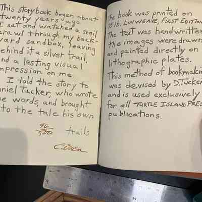 Story and words by Daniel Tucker. Printed of 75 lb. Linweave,, 1st edition. Text and images directly on lithographic plates, a method created by Tucker.