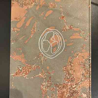 Hard cover case binding with marbled paper boards over two signatures, headbands of unknown material.Notes