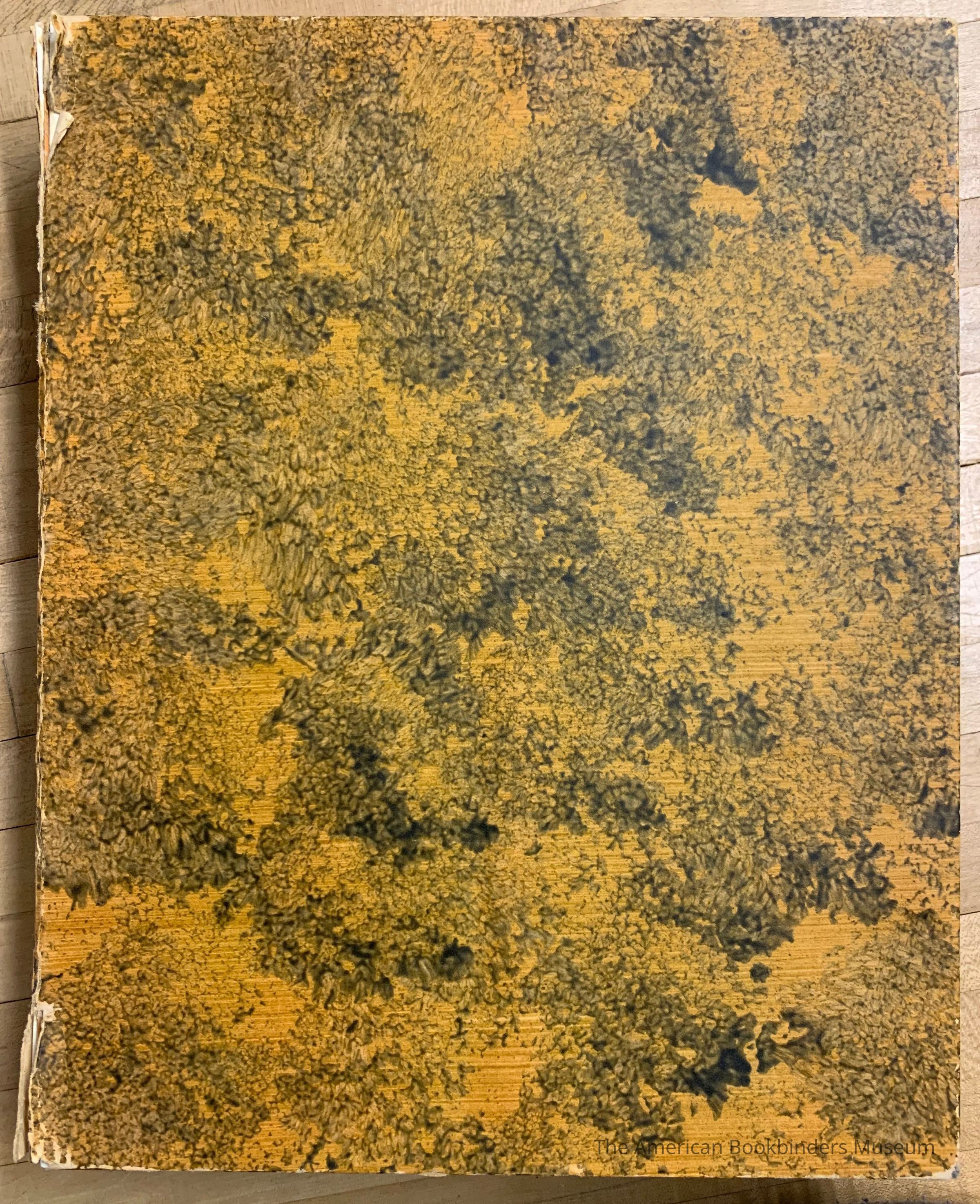 Exterior covered in dark gold paper with black "sponge print" pattern. Siddes and interior in dark gold paper.
