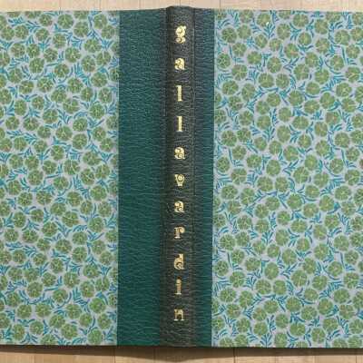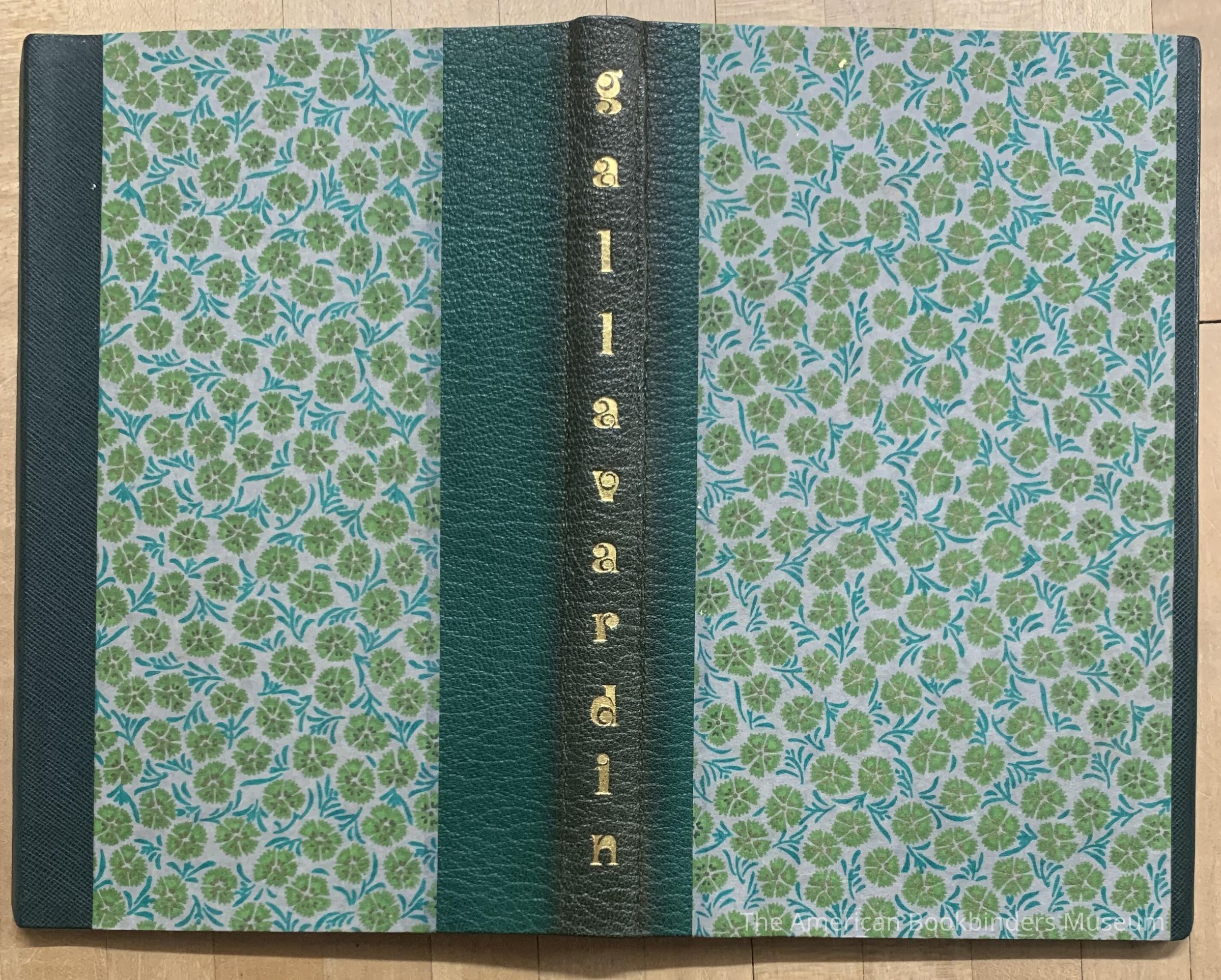 Bound in green leather, the cover decorated with green hologram, other multimedia onlay, and the initials 'm g' in gold; gilt edges, 'gallavardin' on the spine of inner slipcase.