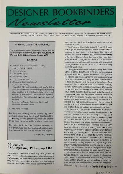 Designer Bookbinders newsletter; No.102; Spring 1998Entry/Object ID