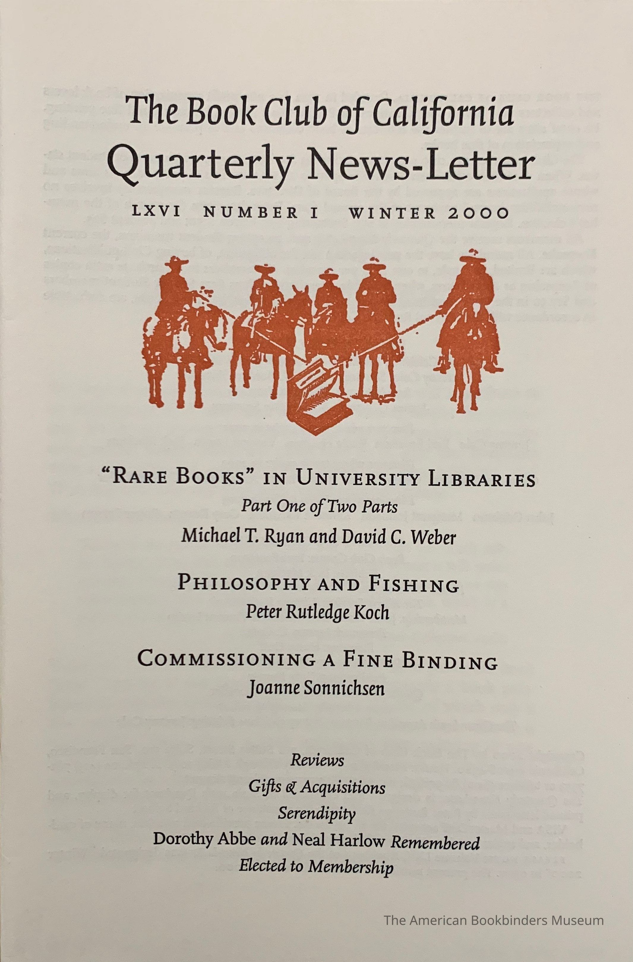 Quarterly news-letter - Book Club of California. Vol. 66, no.1 : Winter 2000.