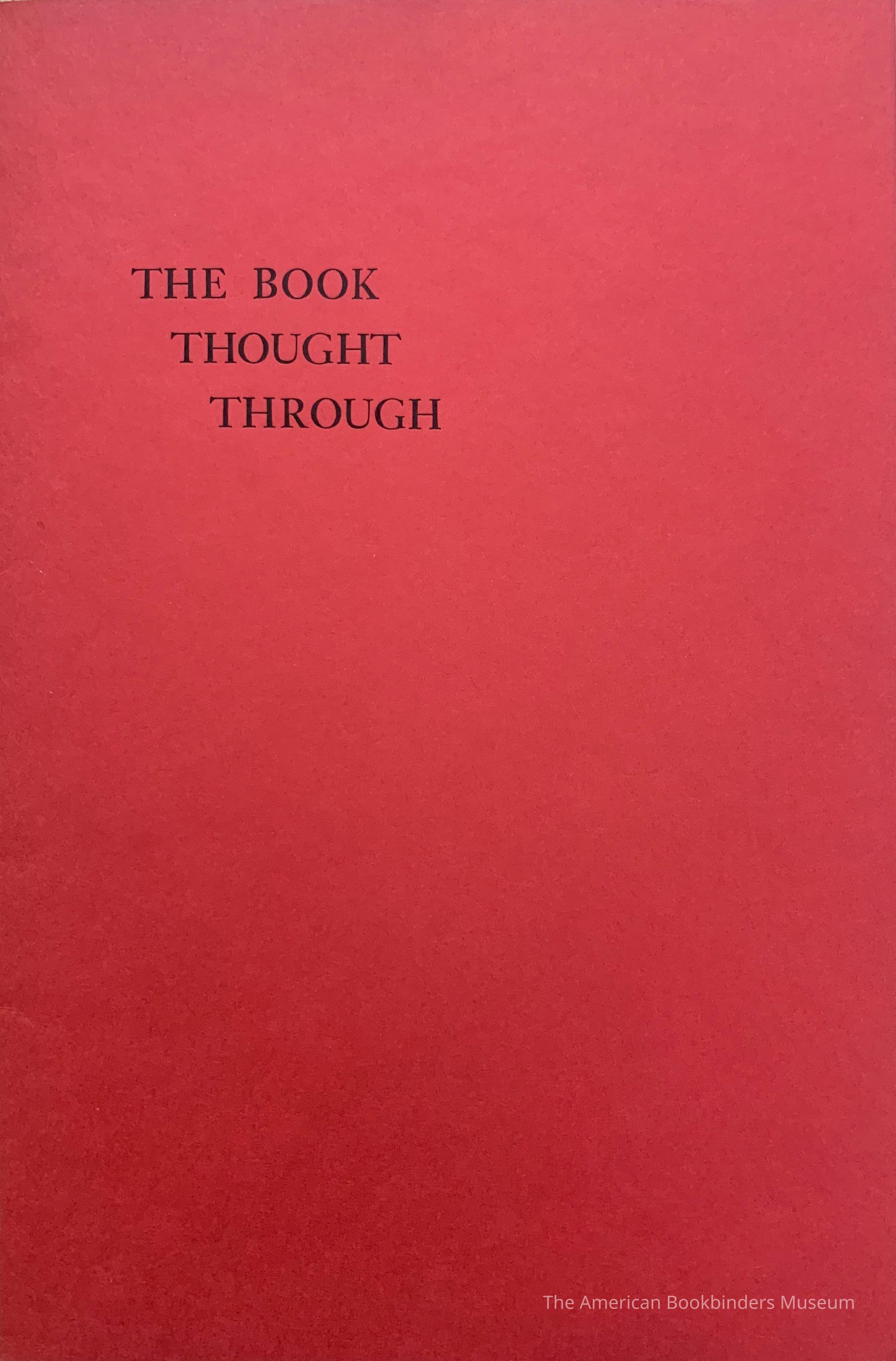 The book thought through : small press comes of age in America : contemporary handmade books in limited edition / selected by Edwina B. Evers.Entry/Object ID