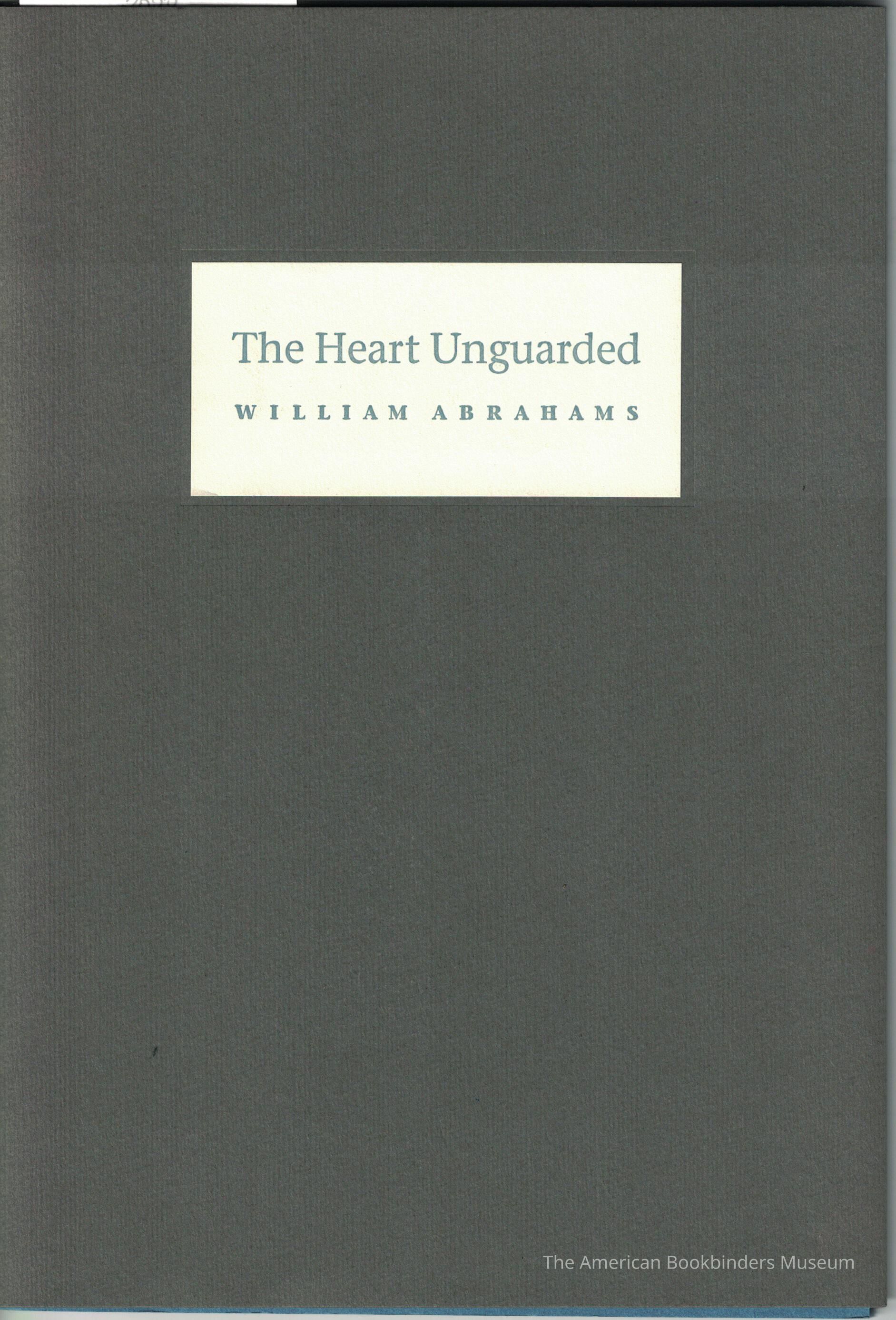 "Published by the Stanford University Libraries in acknowledgement and appreciation of the gift of William Abrahams's papers to Stanford by Peter Stansky, and distributed on the occasion of "The Heart Unguarded: A Tribute to William Abrahams," a round-table discussion reflecting on his life and work as an editor, poet, novelist, and biographer. The Bender Room, Green Library, April 25, 200. Three hundred copies printed letterpress by Peter Koch ... Designed by Becky Fischbach ..."--Title page verso., Poems.Collection